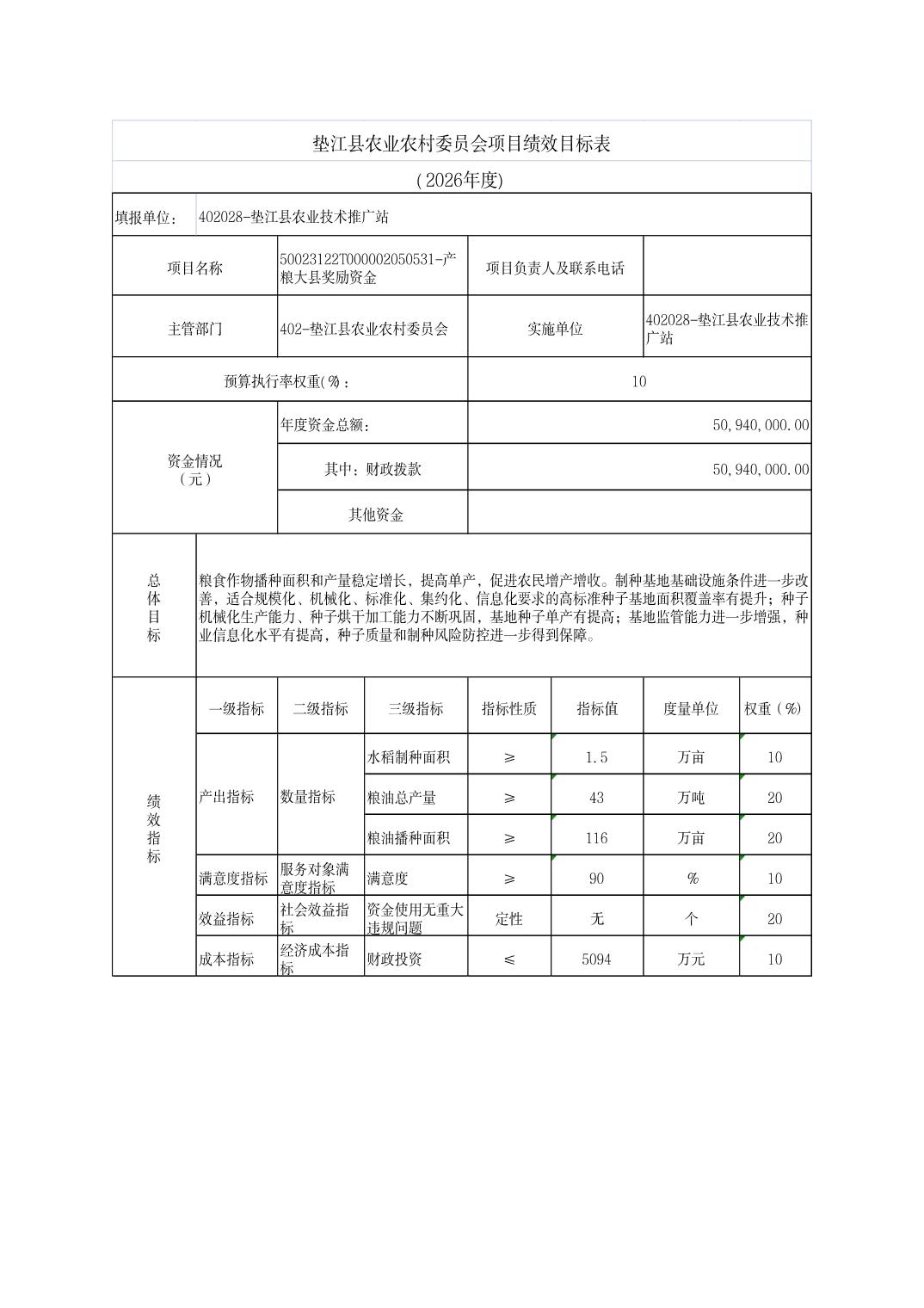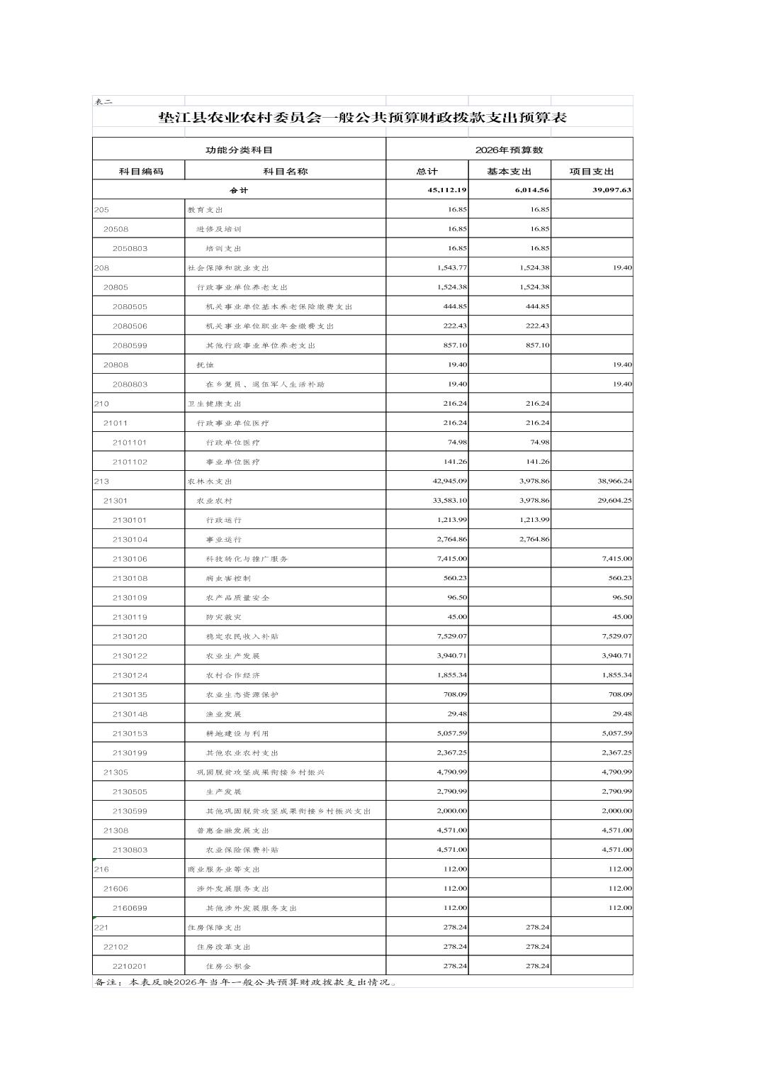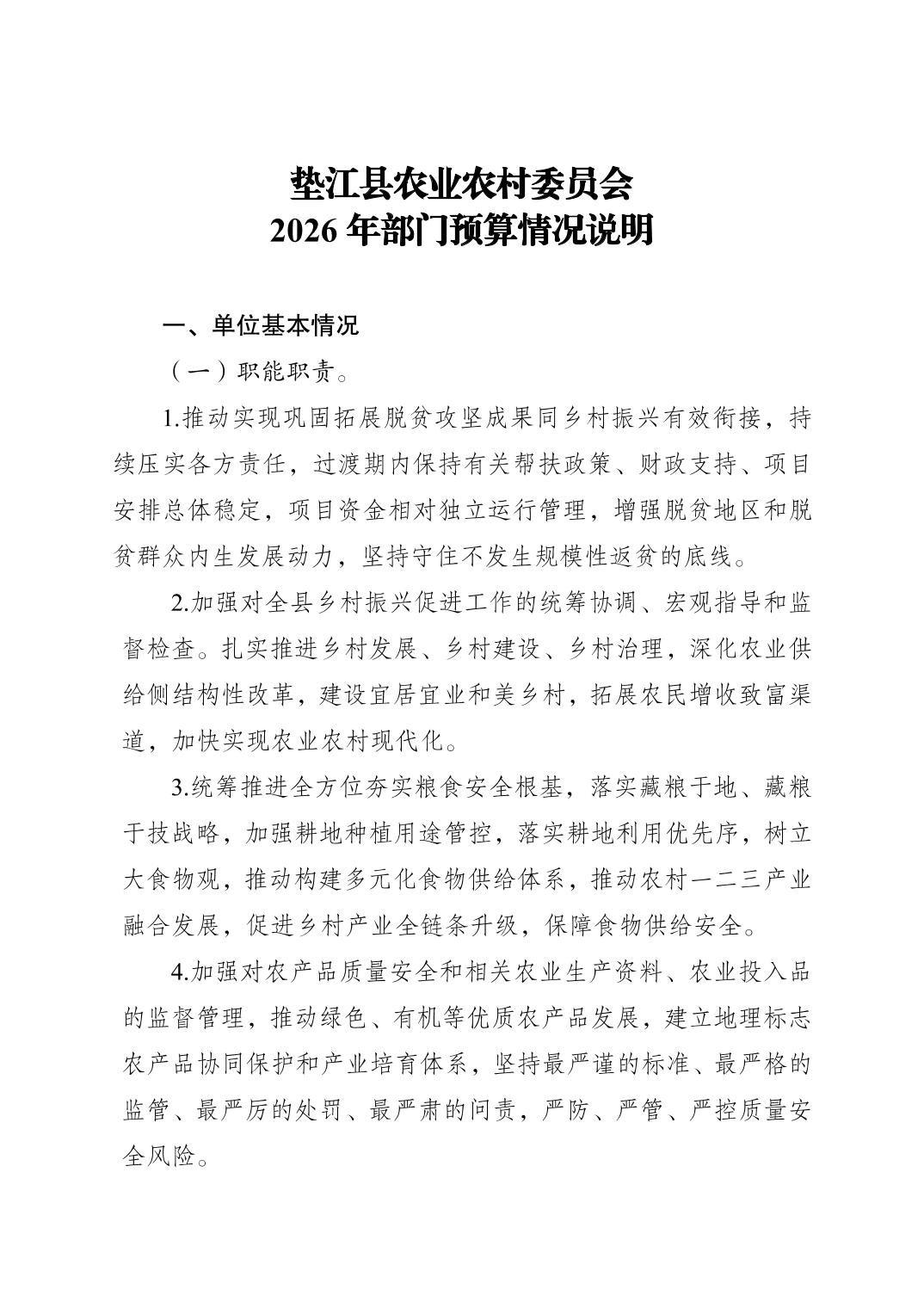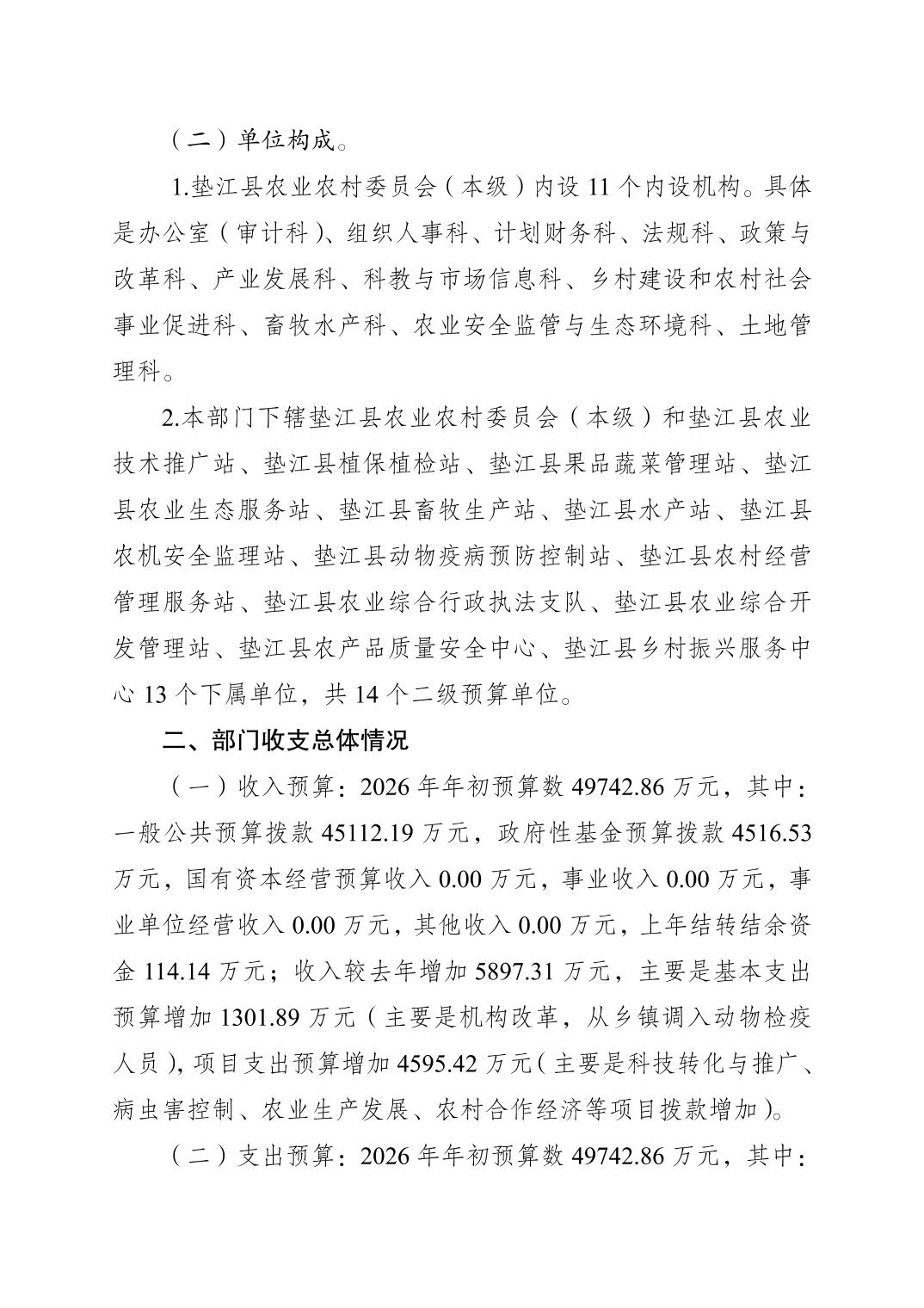 垫江县农业农村委员会2026年部门预算情况说明