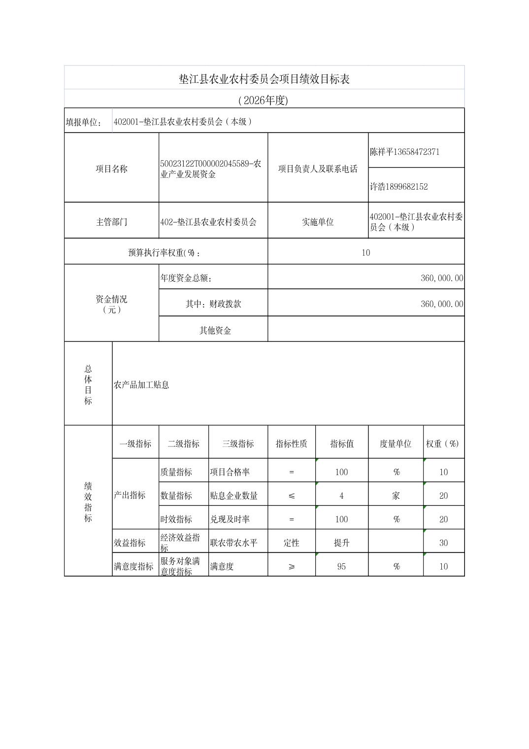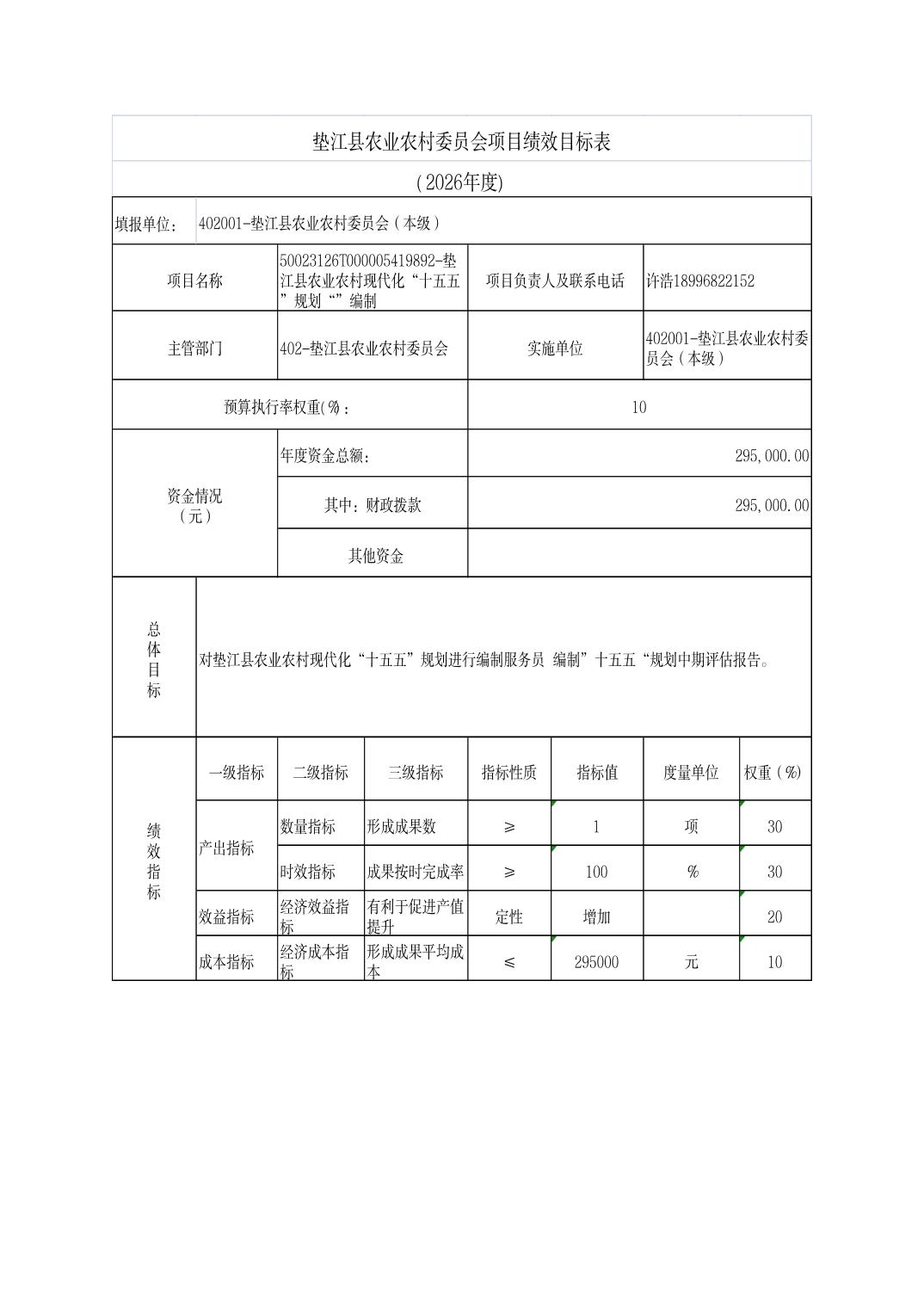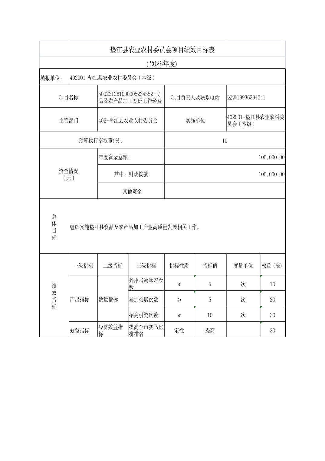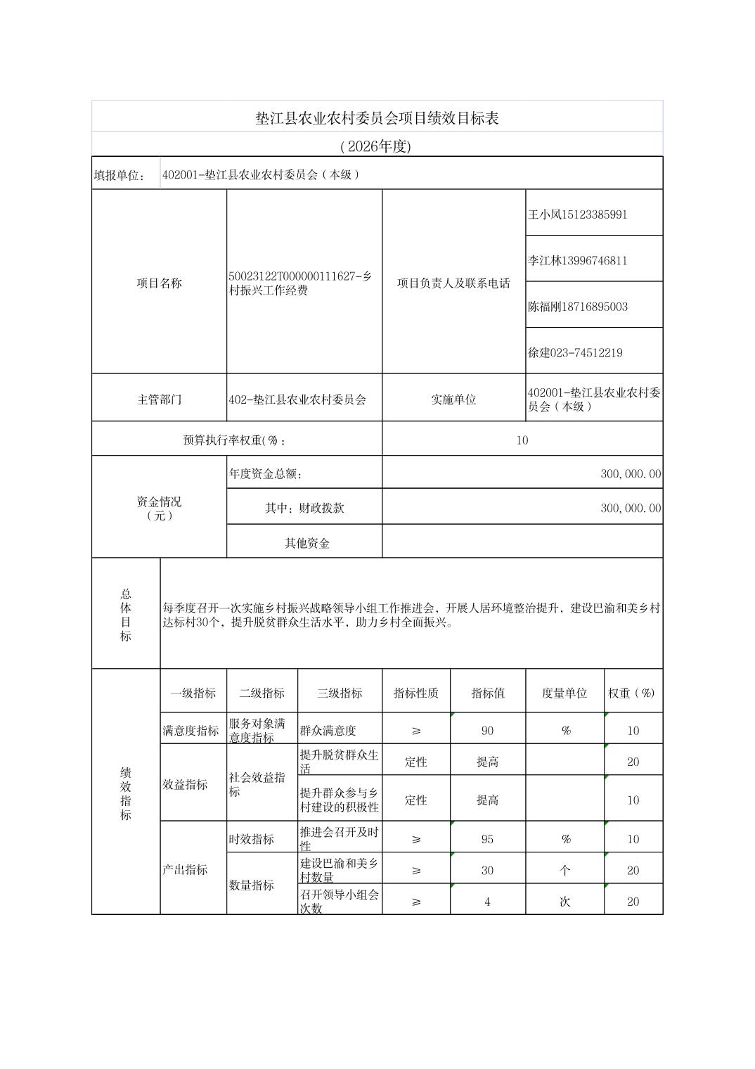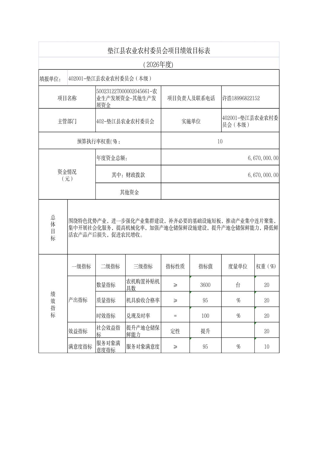 垫江县农业农村委员会2026年部门预算情况说明