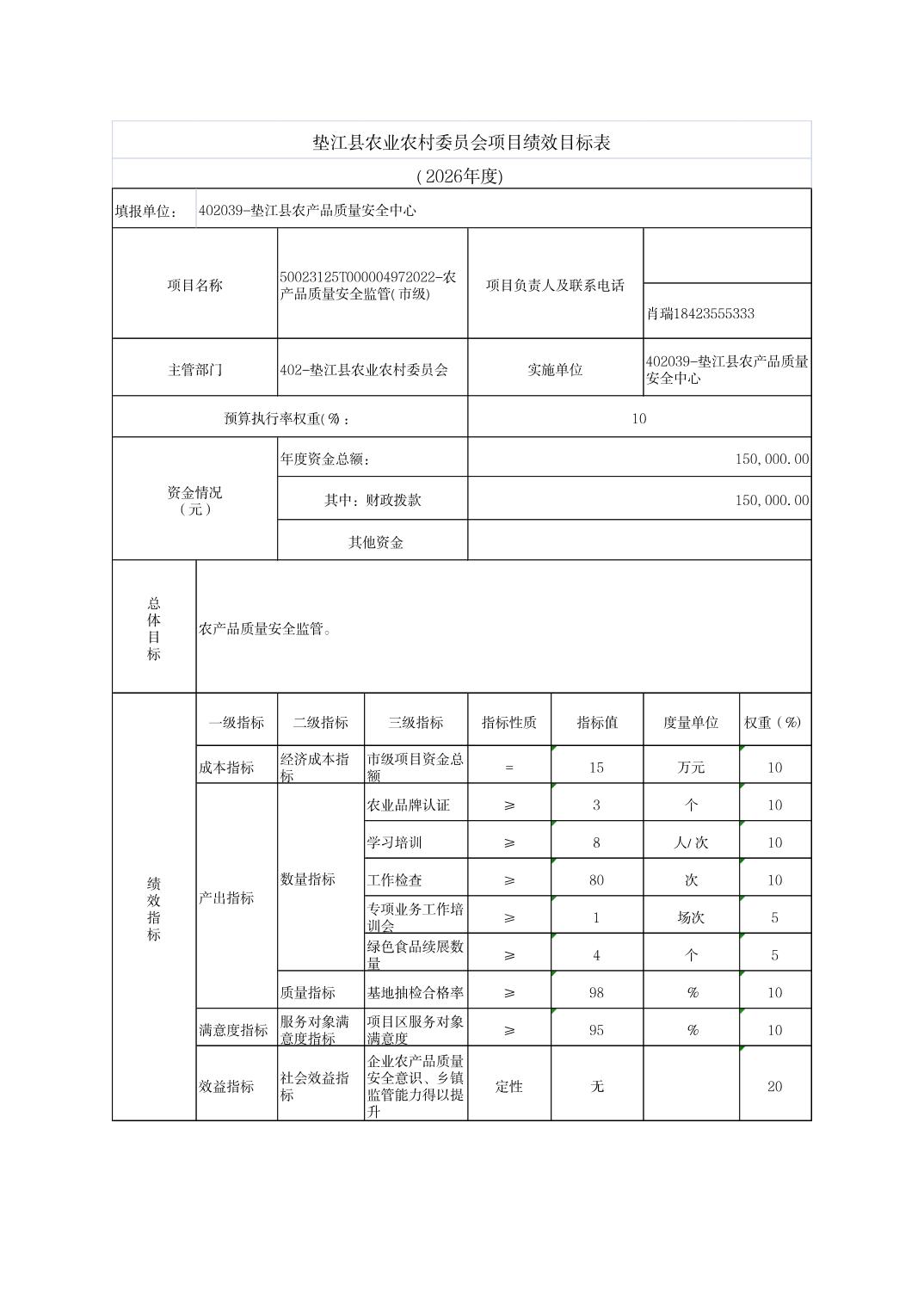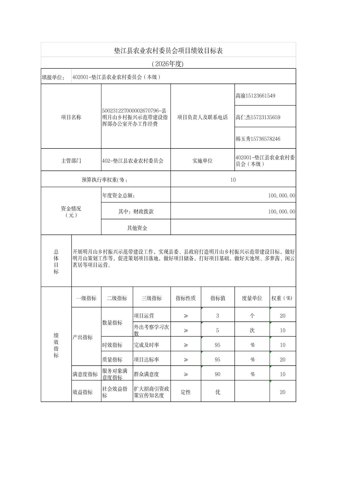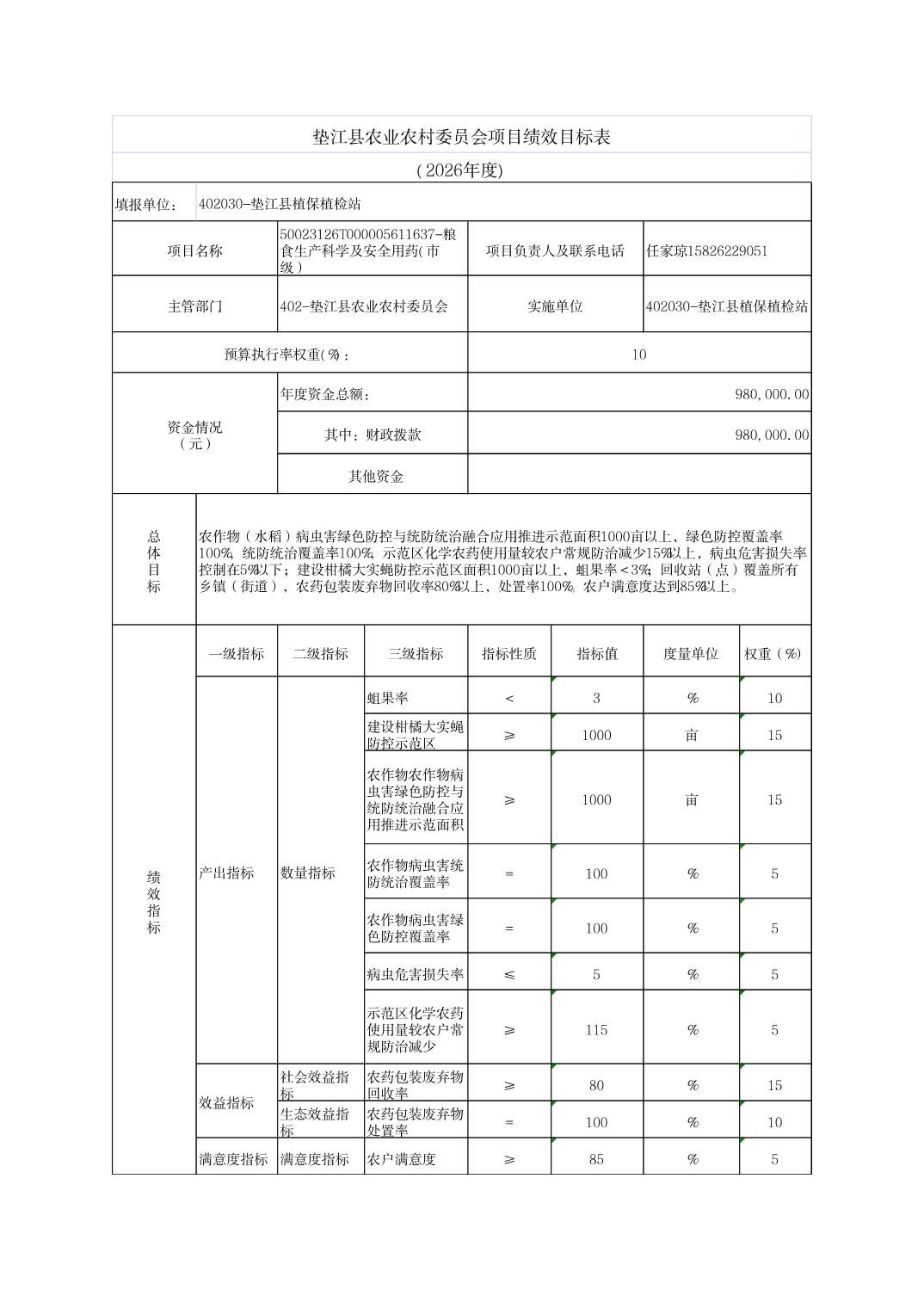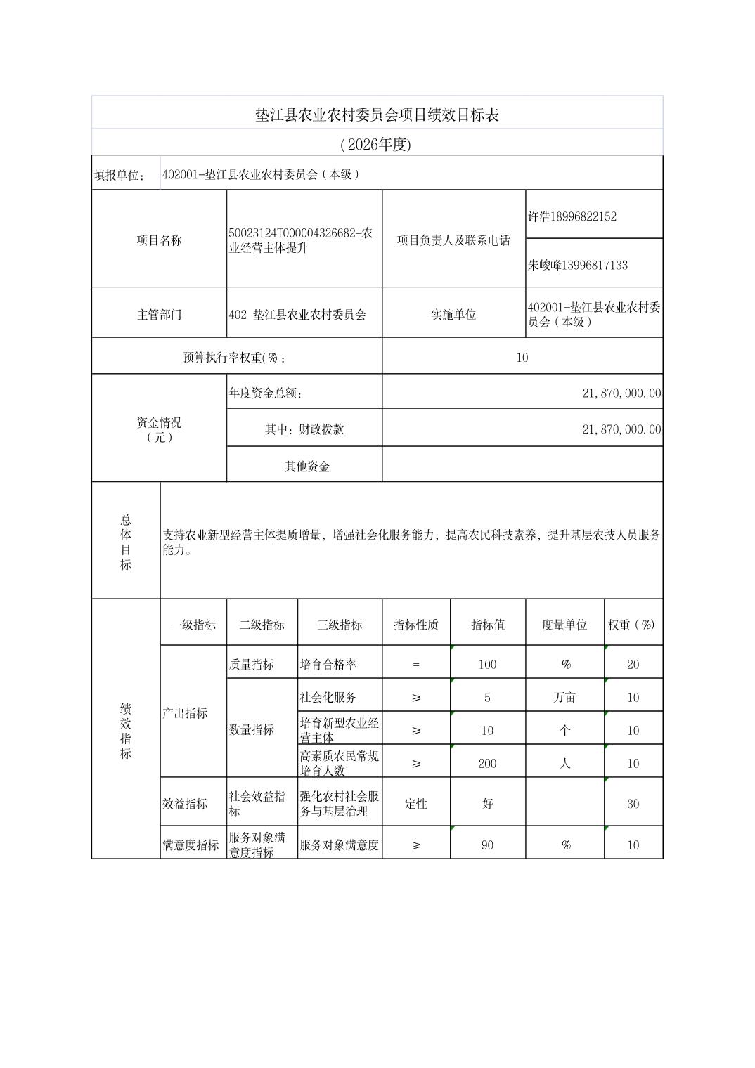 垫江县农业农村委员会2026年部门预算情况说明