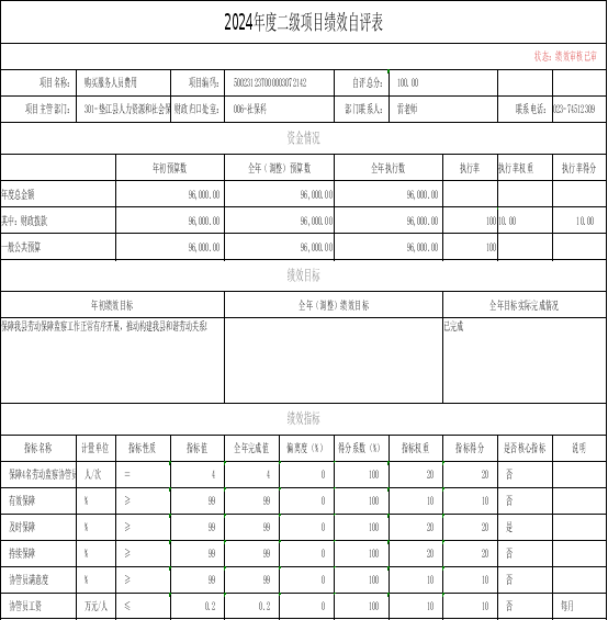 根据预算绩效管理要求,我单位对1个二级项目开展了绩效自评,涉及财政拨款项目支出资金9.6万元。