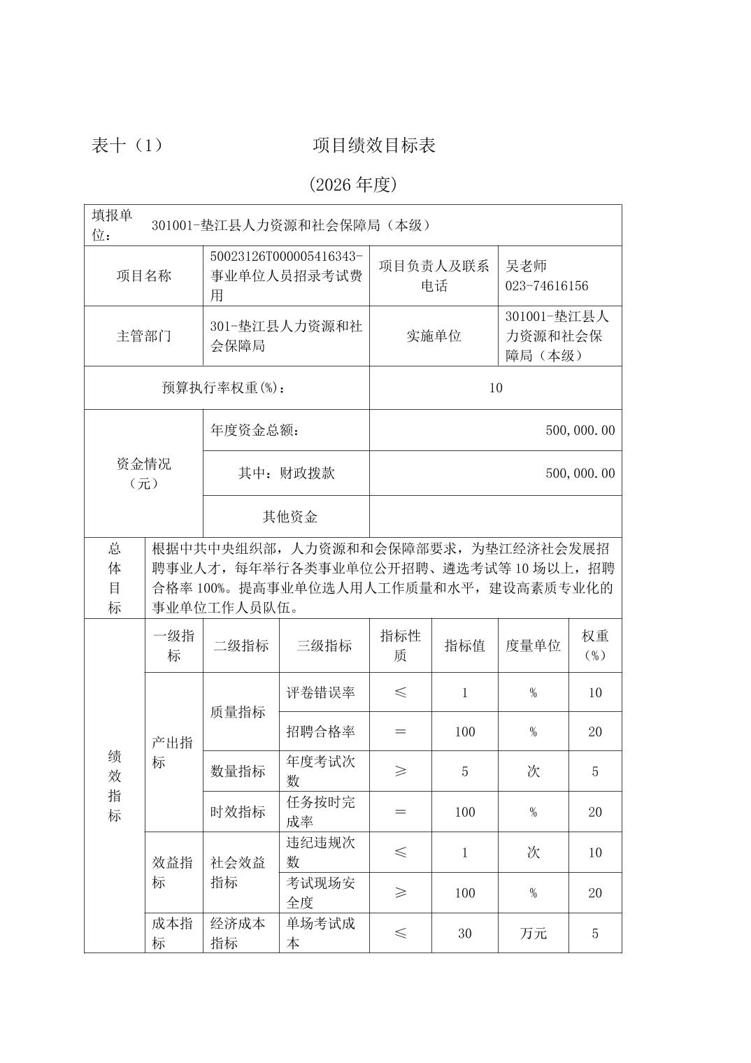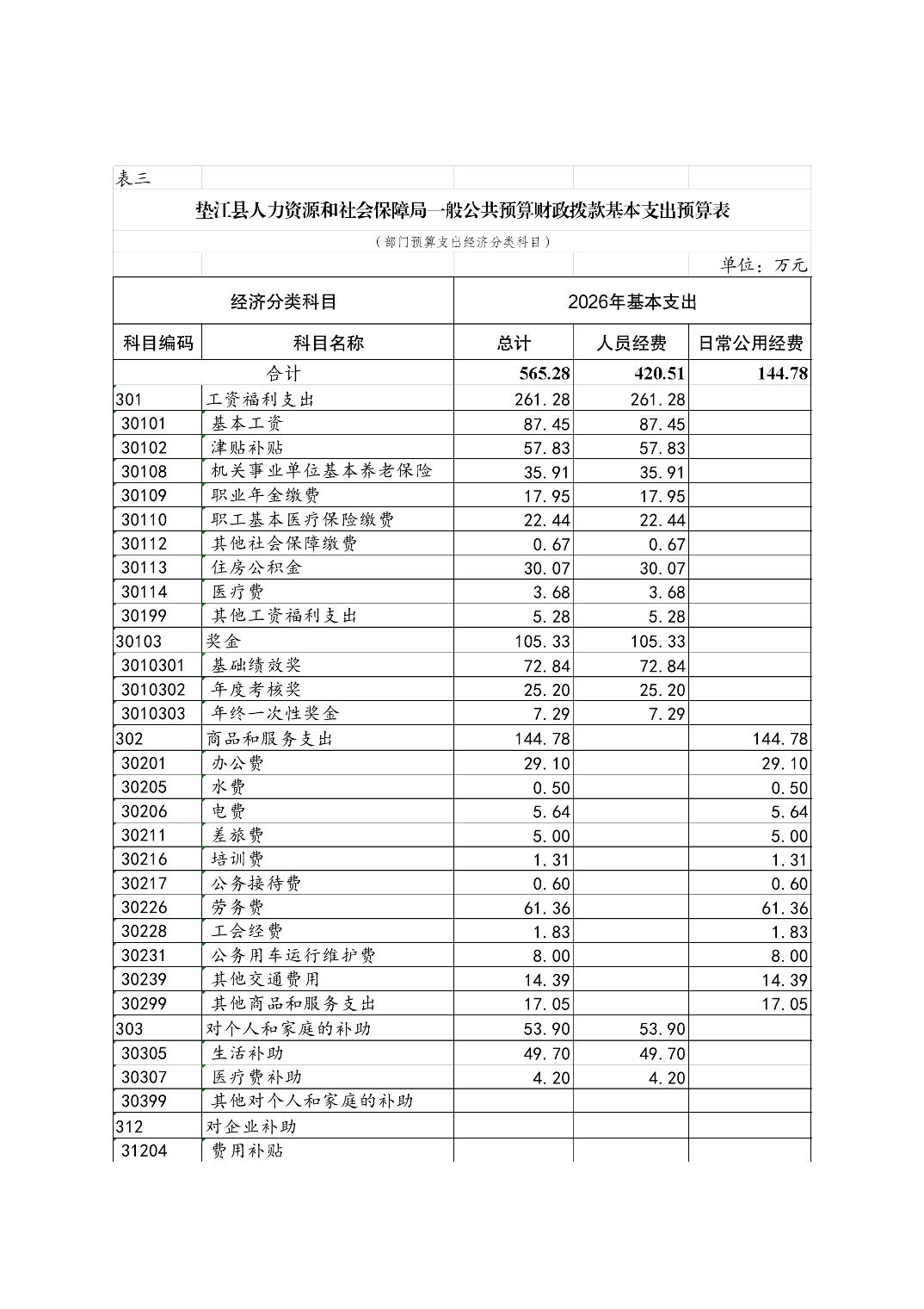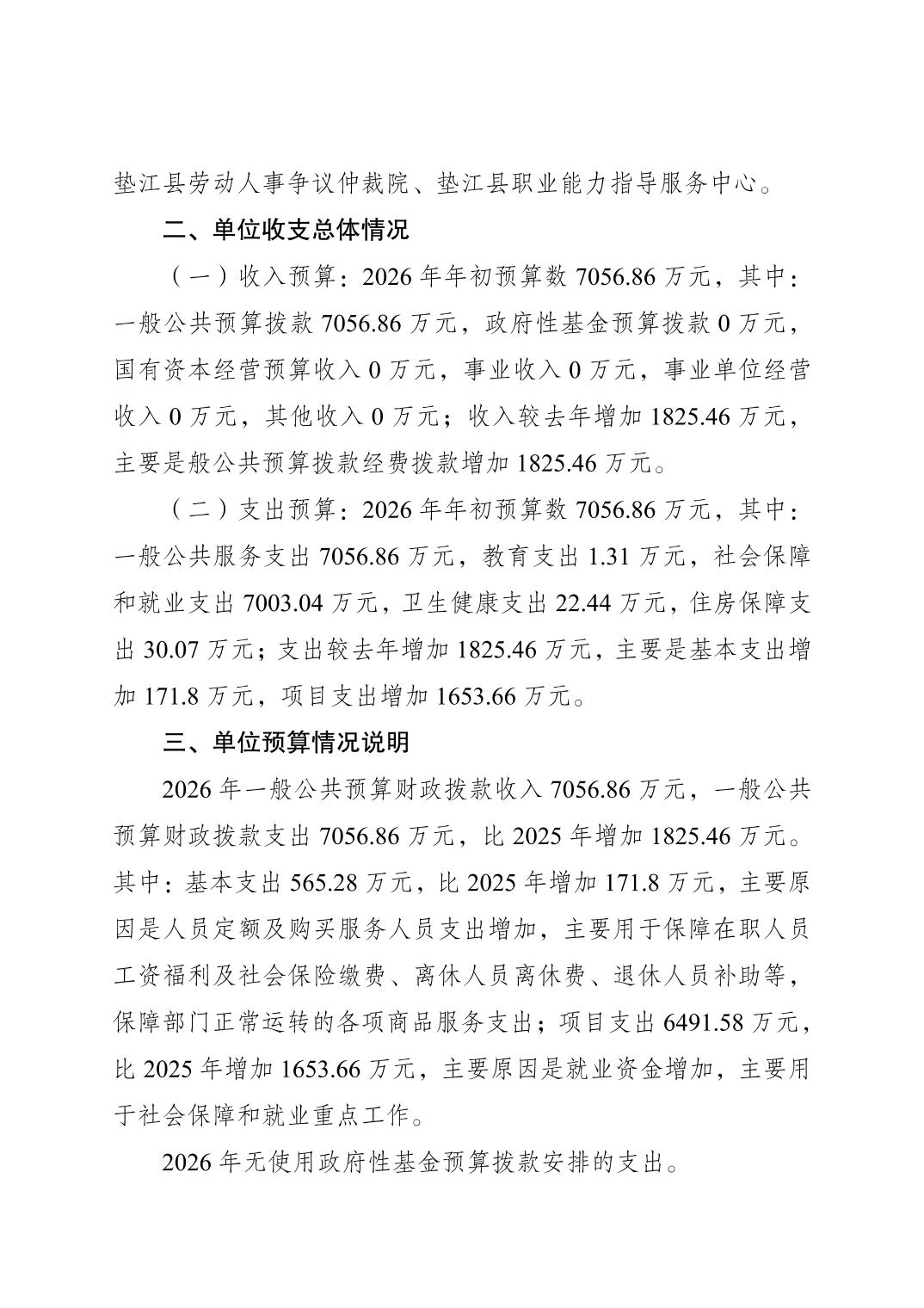 垫江县人力资源和社会保障局(本级)2026年部门预算情况说明