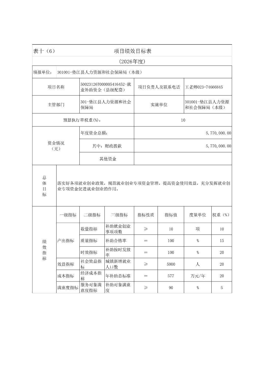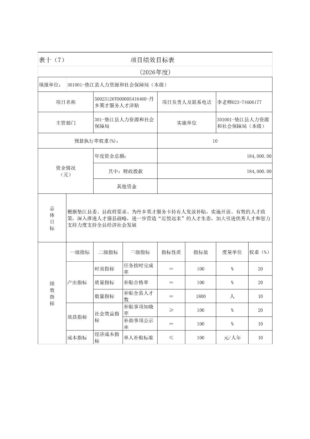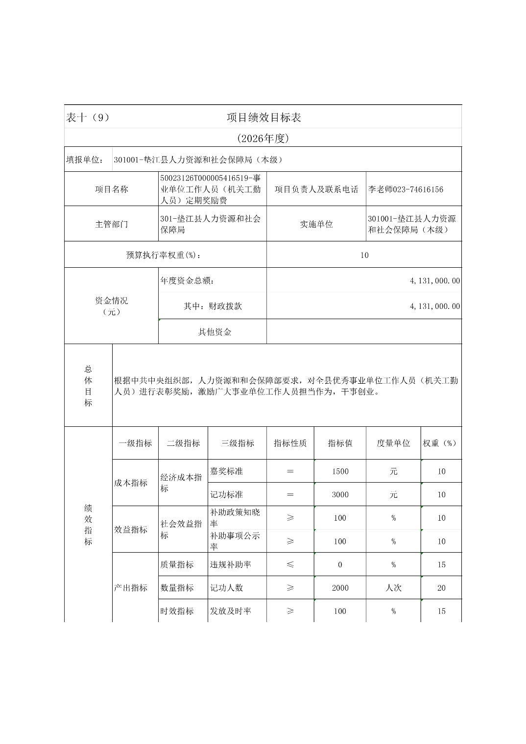 垫江县人力资源和社会保障局(本级)2026年部门预算情况说明