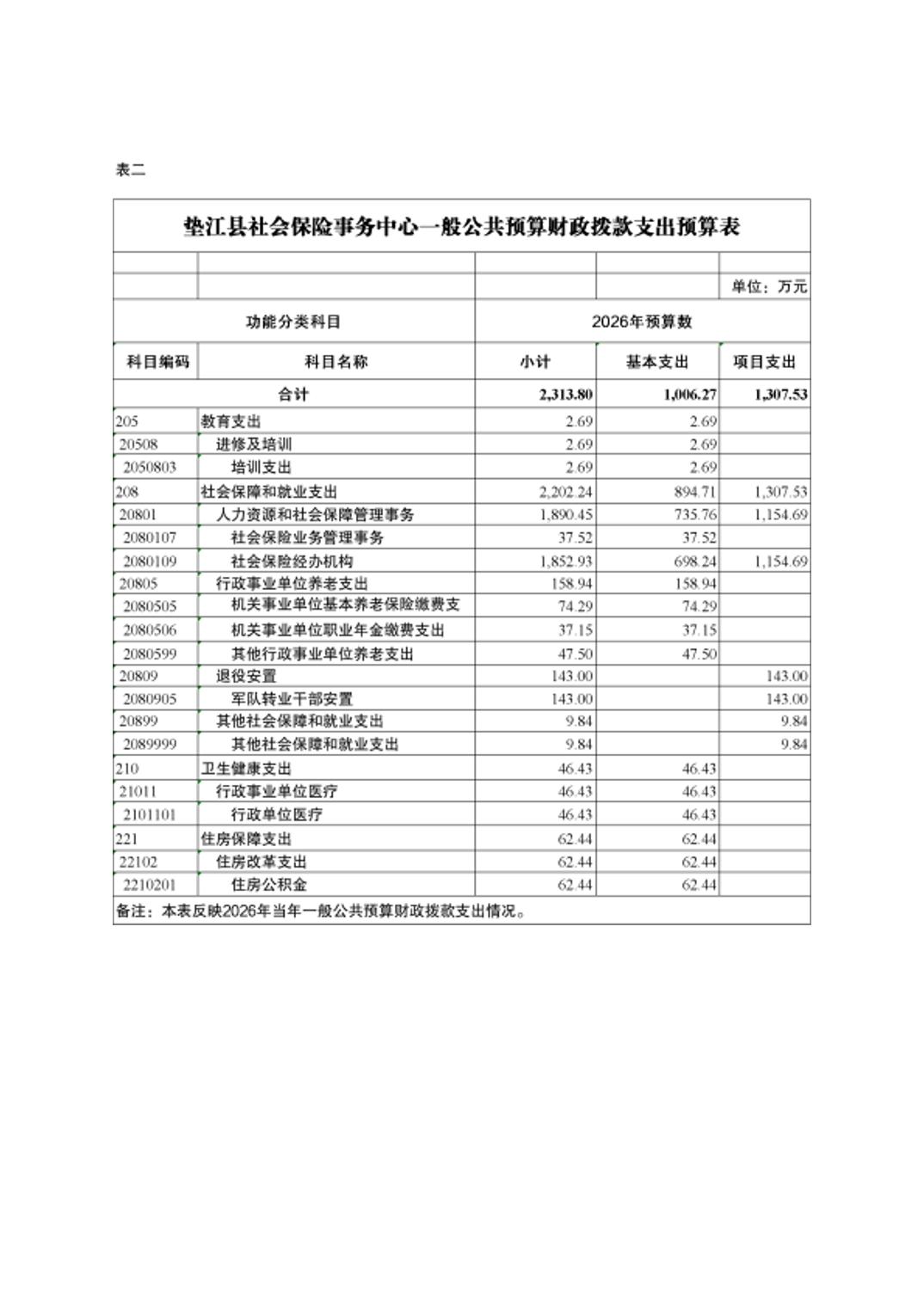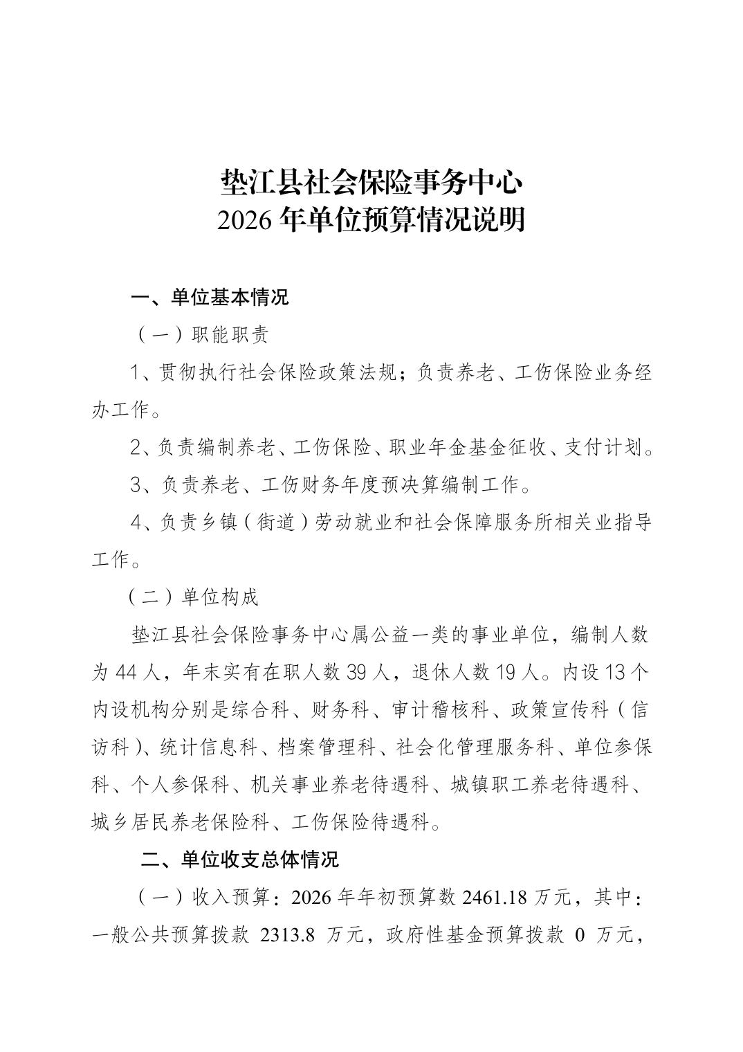垫江县社会保险事务中心2026年部门预算情况说明