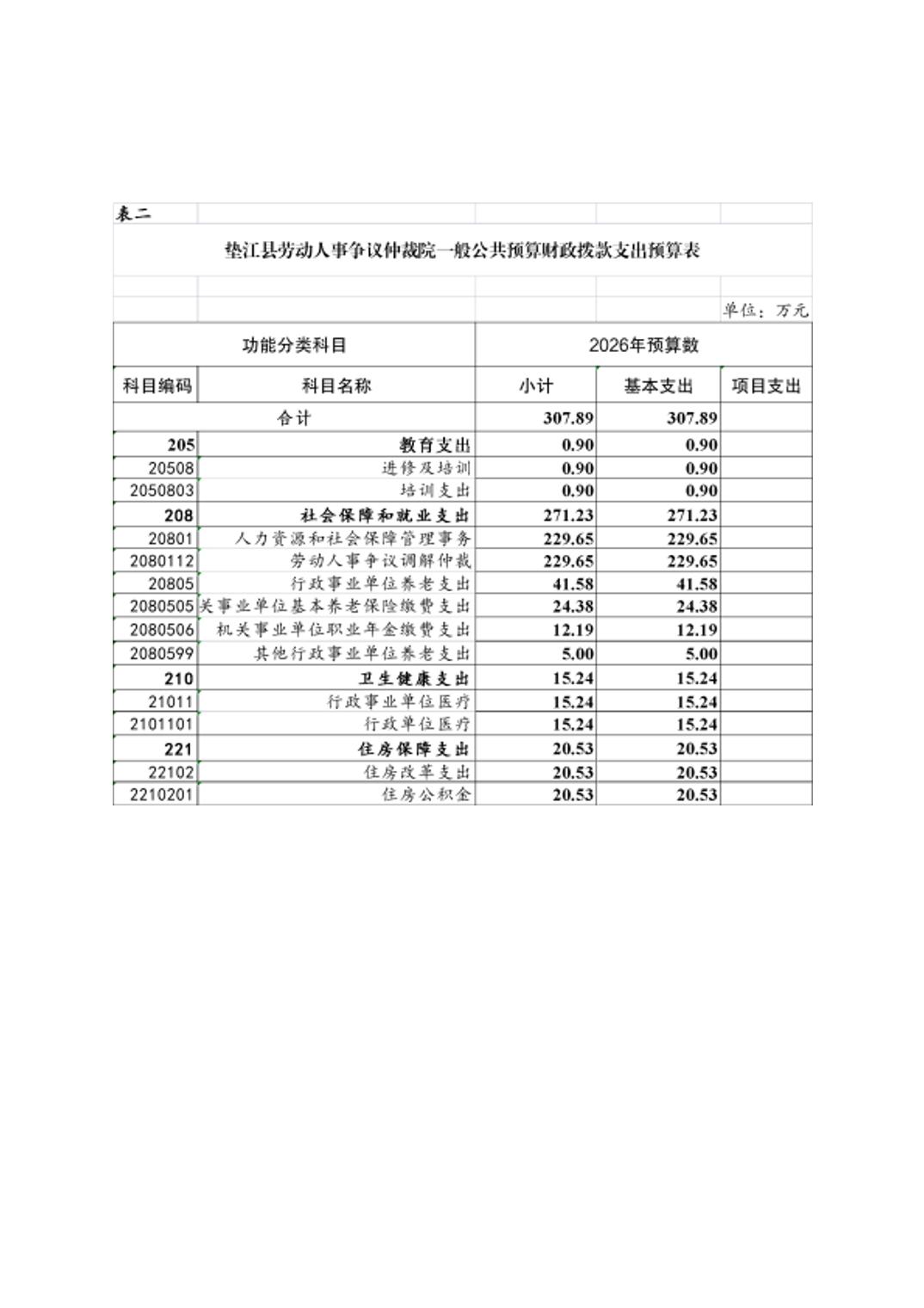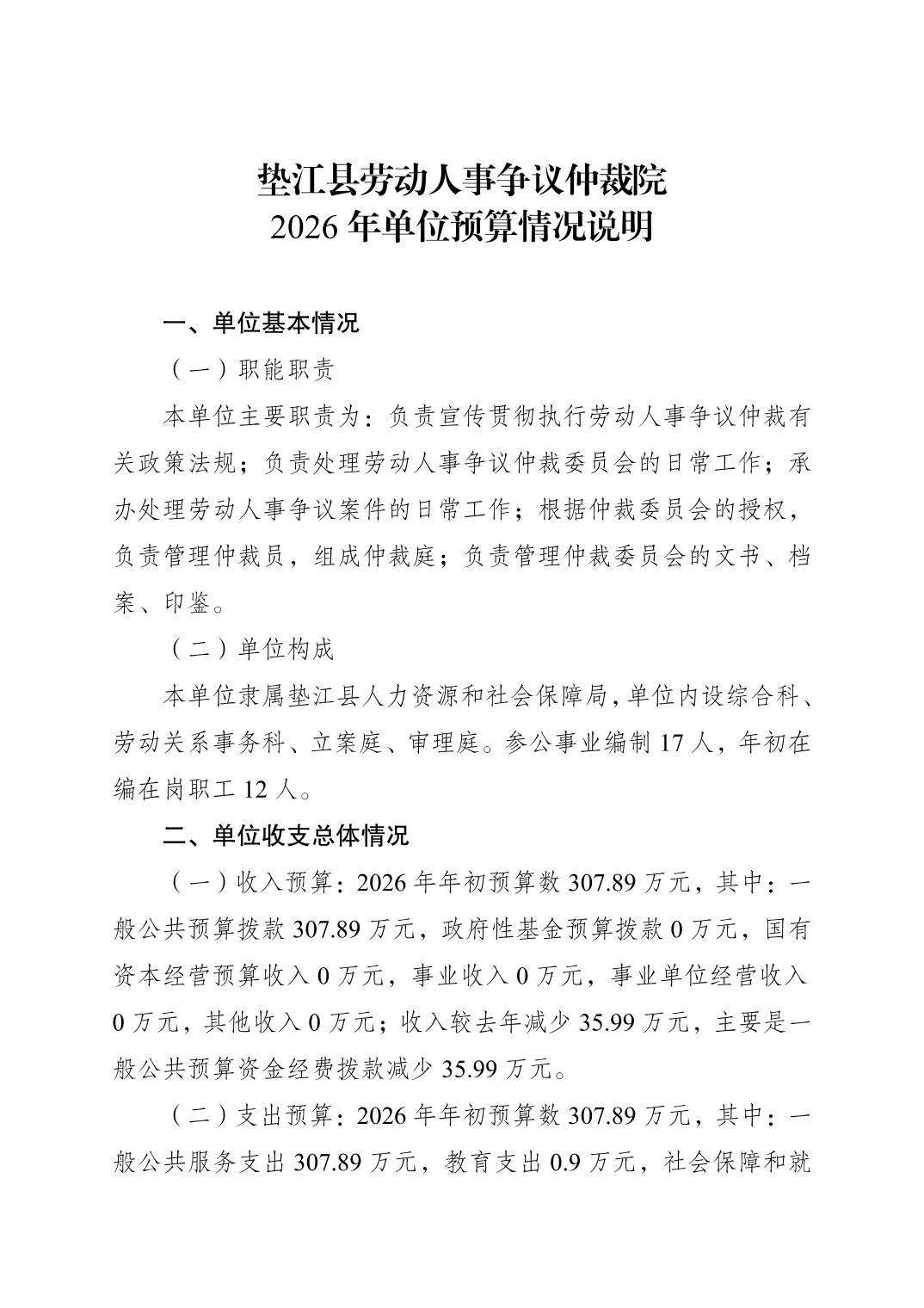 垫江县劳动人事争议仲裁院2026年部门预算情况说明
