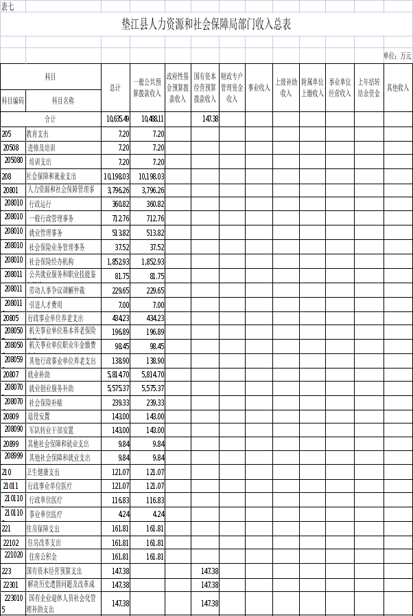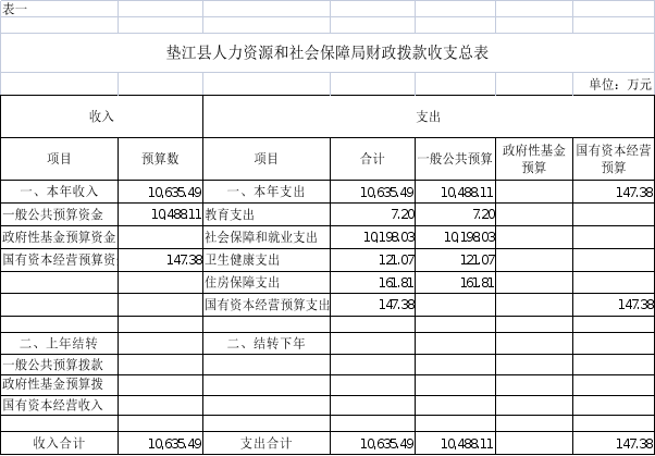 根据《中共垫江县委办公室、垫江县人民政府办公室关于印发<垫江县人力资源和社会保障局职能配置、内设机构和人员编制规定>的通知》(垫江委办发〔2019〕37号)规定,垫江县人力资源和社会保障局内设9个机构科室,分别是办公室法规科(信访科)、人力资源管理科、专业技术人员管理科(垫江县职称改革办公室)、事业单位人事管理科、劳动关系科(行政许可服务科)、社会保障科、工资福利科、监督科。下属单独进行单位预算公开的二级预算单位有垫江县社会保险事务中心、垫江县就业和人才中心、垫江县劳动人事争议仲裁院、垫江县职业能力指导服务中心。