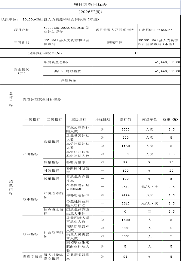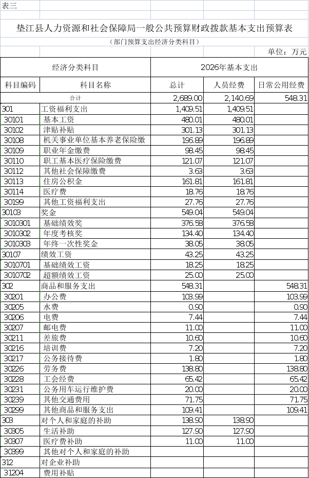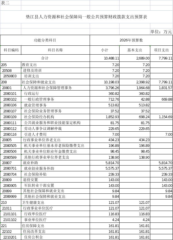 垫江县人力资源和社会保障局 2026年部门预算情况说明