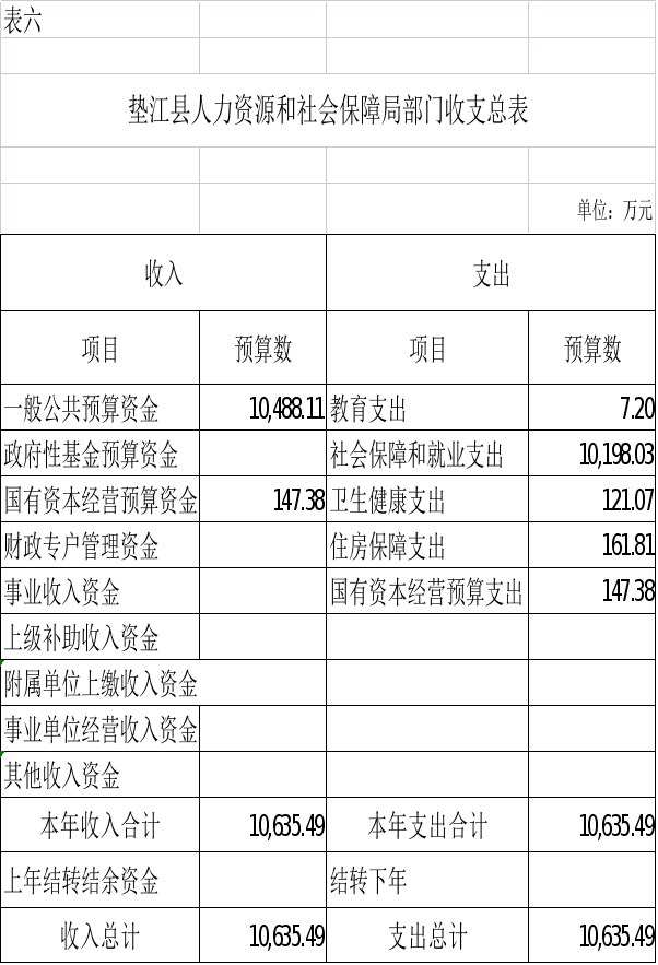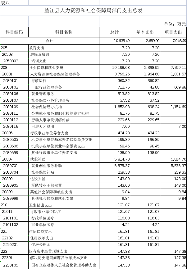(二)支出预算:2026年年初预算数10635.49万元,其中:一般公共服务支出0万元,教育支出7.2万元,社会保障和就业支出10198.03万元,卫生健康支出121.07万元,住房保障支出161.81万元,国有资本经营预算支出147.38万元,;支出较去年増加1998.56万元,主要是基本支出增加268.42万元,项目支出增加1730.14万元。