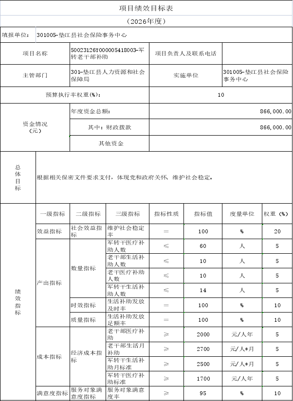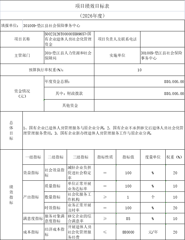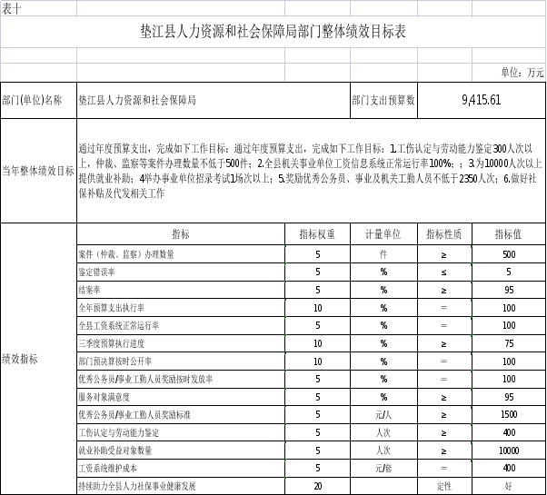 10.(部门名称)2026年部门和单位整体绩效目标表