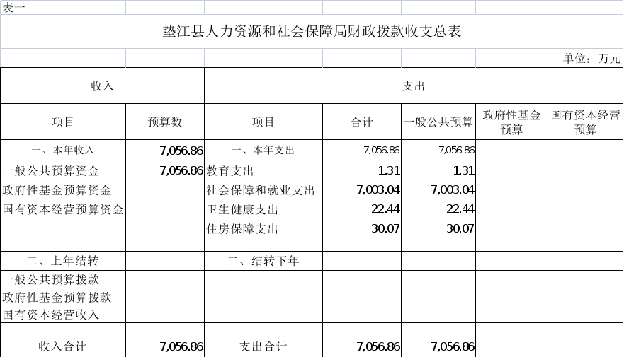 附表:1.(单位名称)财政拨款收支总表