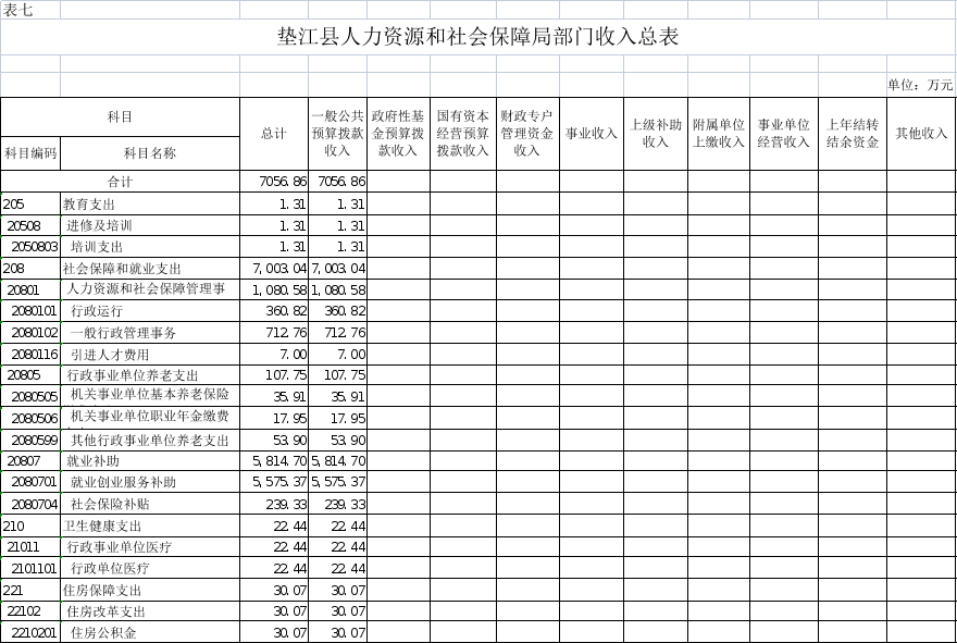 7.(单位名称)部门收入总表