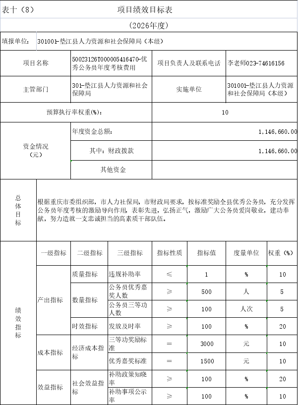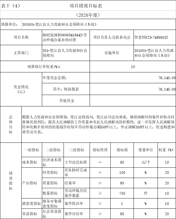 10.(单位名称)2026年项目绩效目标表