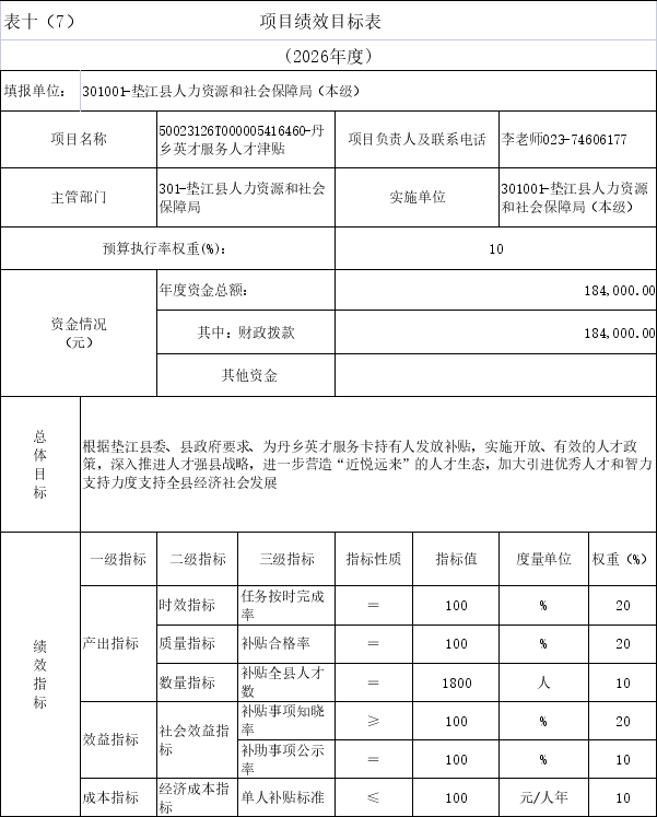 表十(1)项目绩效目标表 |