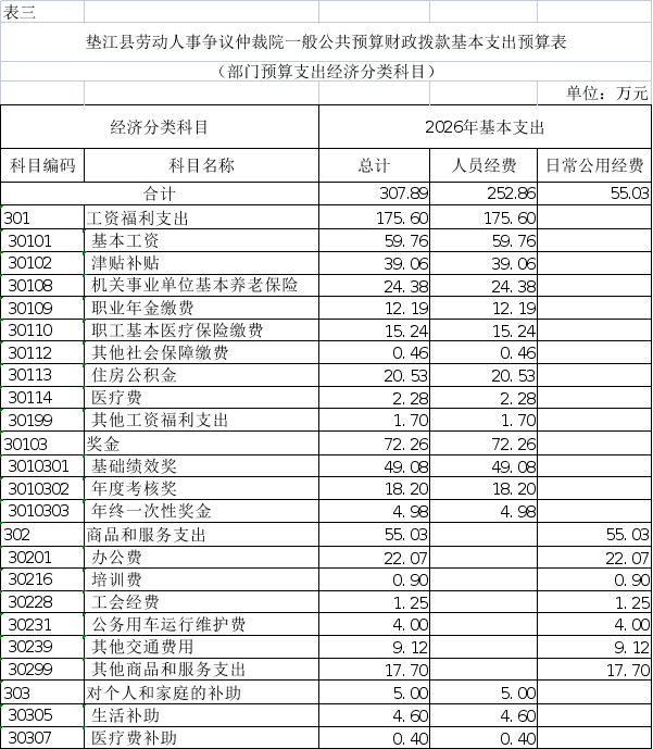 垫江县劳动人事争议仲裁院 2026年单位预算情况说明
