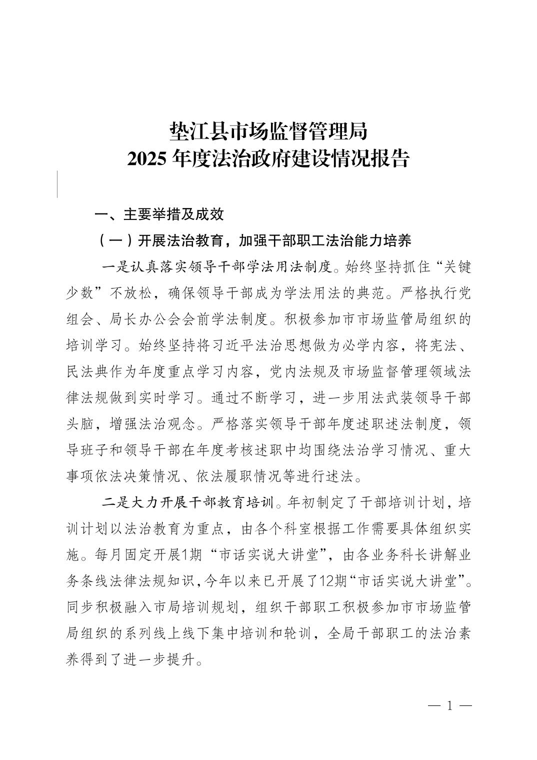 垫江县市场监督管理局2025年度法治政府建设情况报告