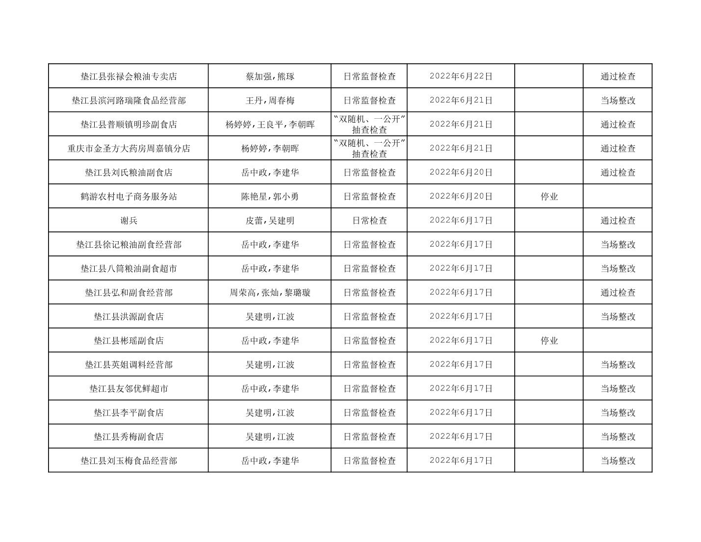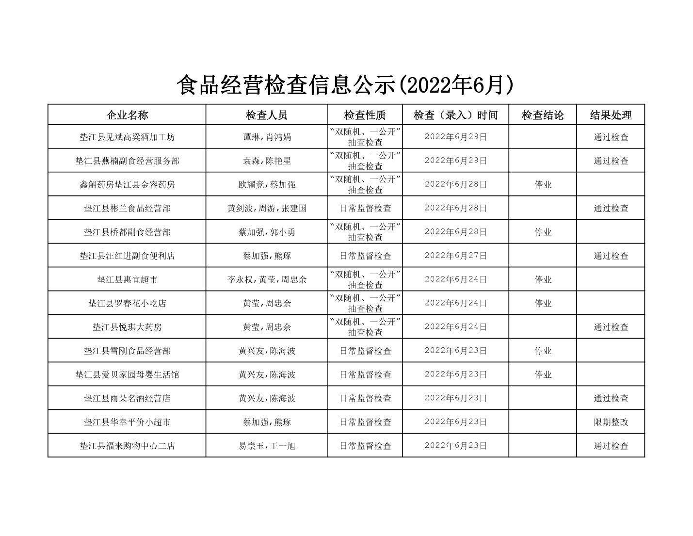 您当前的位置:首页>市场监督管理局>政府信息公开目录>基层政务公开>领域信息公开>食品药品监管领域>监督检查>检查结果及后处置>食品经营检查结果