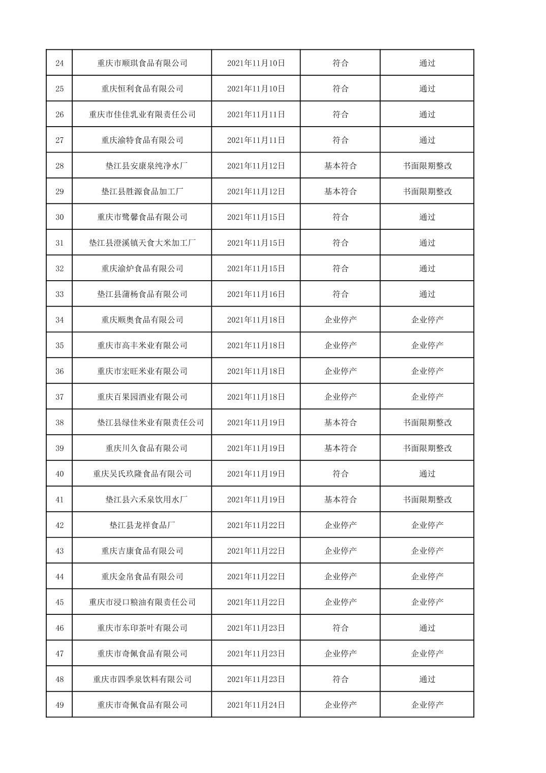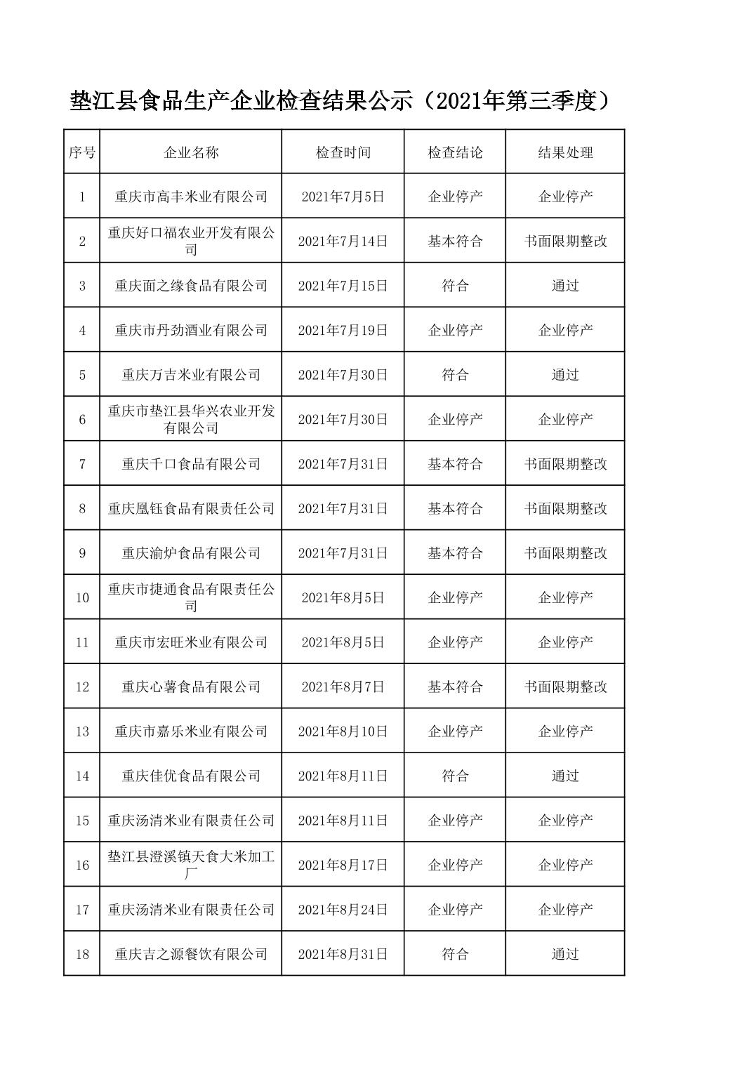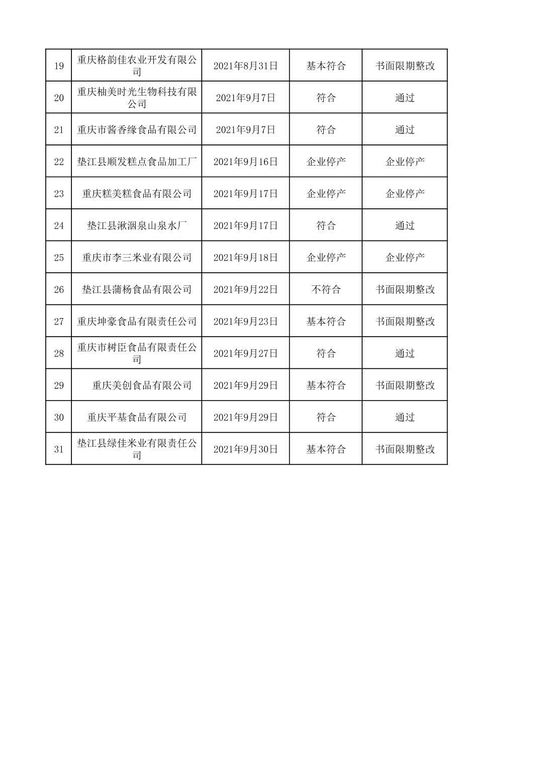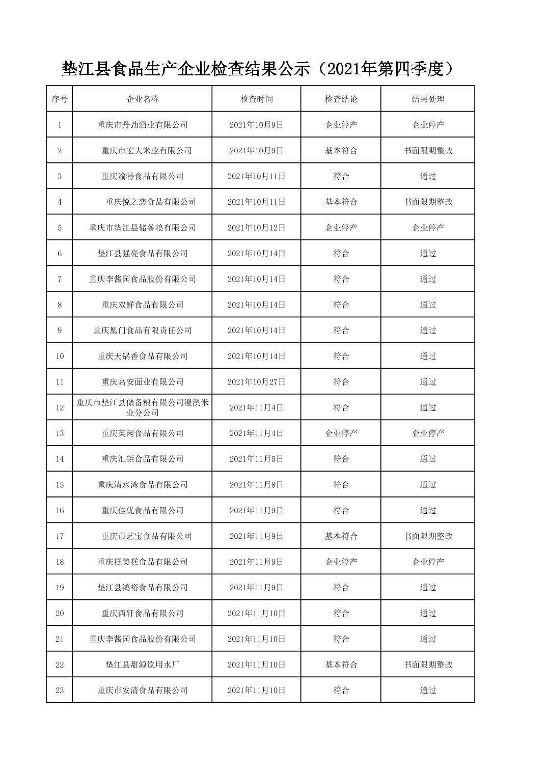 垫江县食品生产企业“双随机、一公开”检查情况信息台账(2022年)