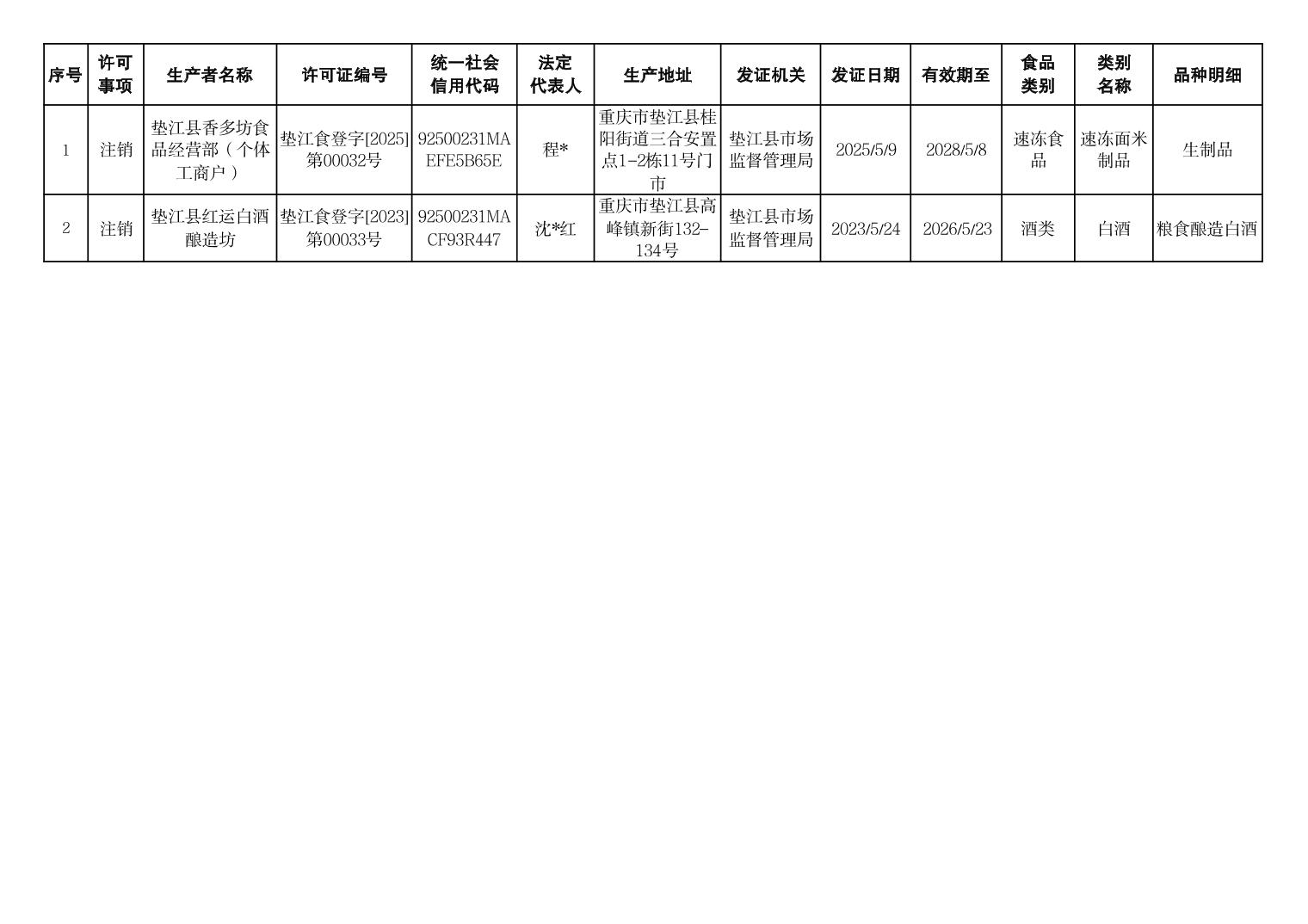 垫江县小作坊登记证注销情况信息台账(2025年12月)