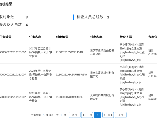 垫江县统计局2025年“双随机、一公开”抽选结果公示