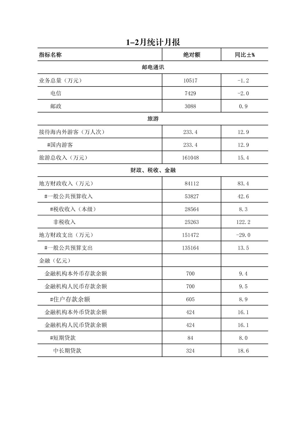 垫江县2026年2月统计月报