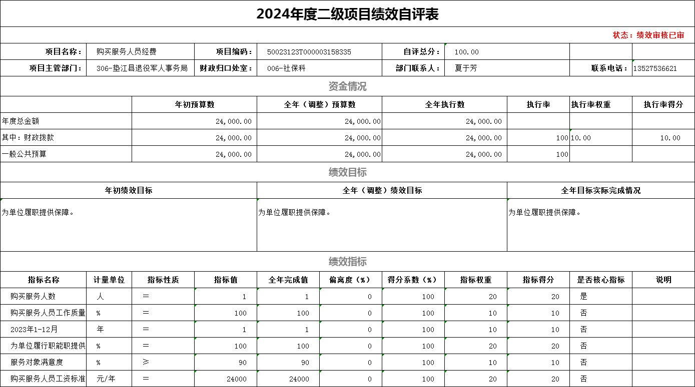 (项目支出绩效自评表二级项目)