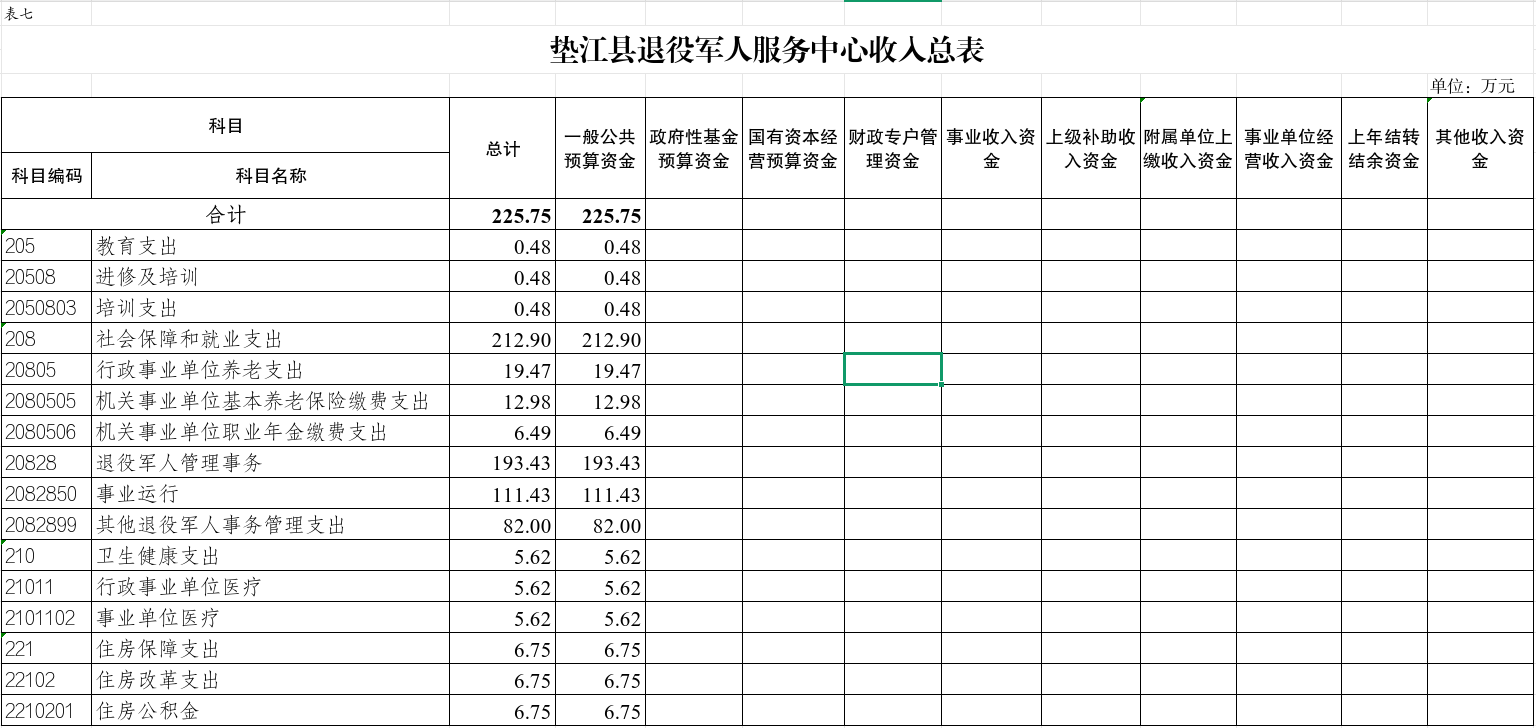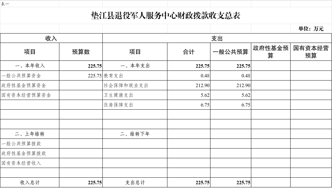 附表:1.垫江县退役军人服务中心财政拨款收支总表