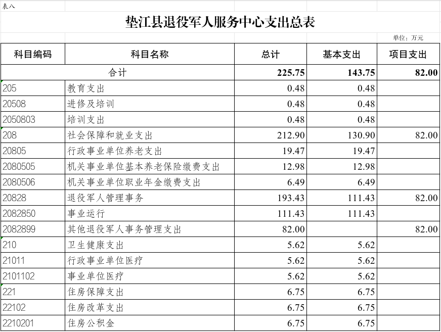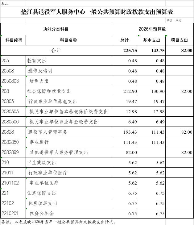 2.垫江县退役军人服务中心一般公共预算财政拨款支出预算表