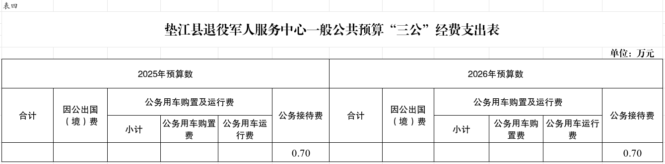 4.垫江县退役军人服务中心一般公共预算“三公”经费支出表