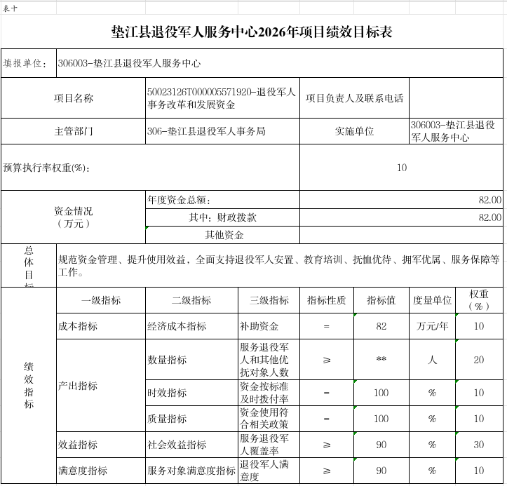 10.垫江县退役军人服务中心2026年项目绩效目标表