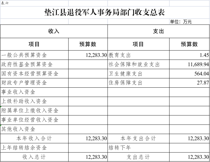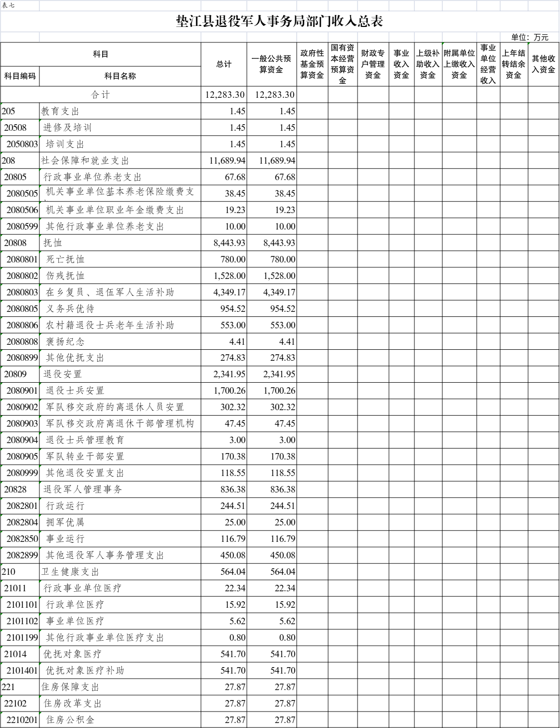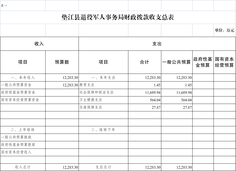 附表:1.垫江县退役军人事务局财政拨款收支总表