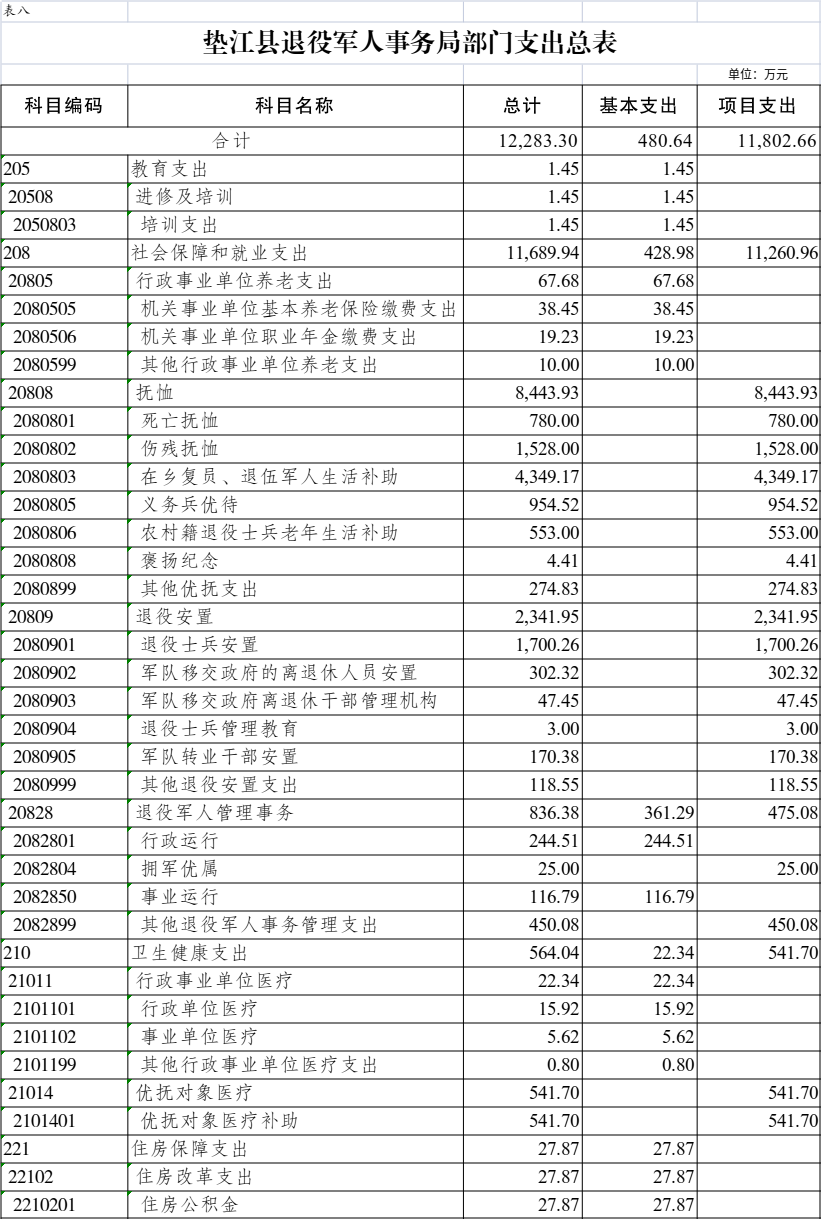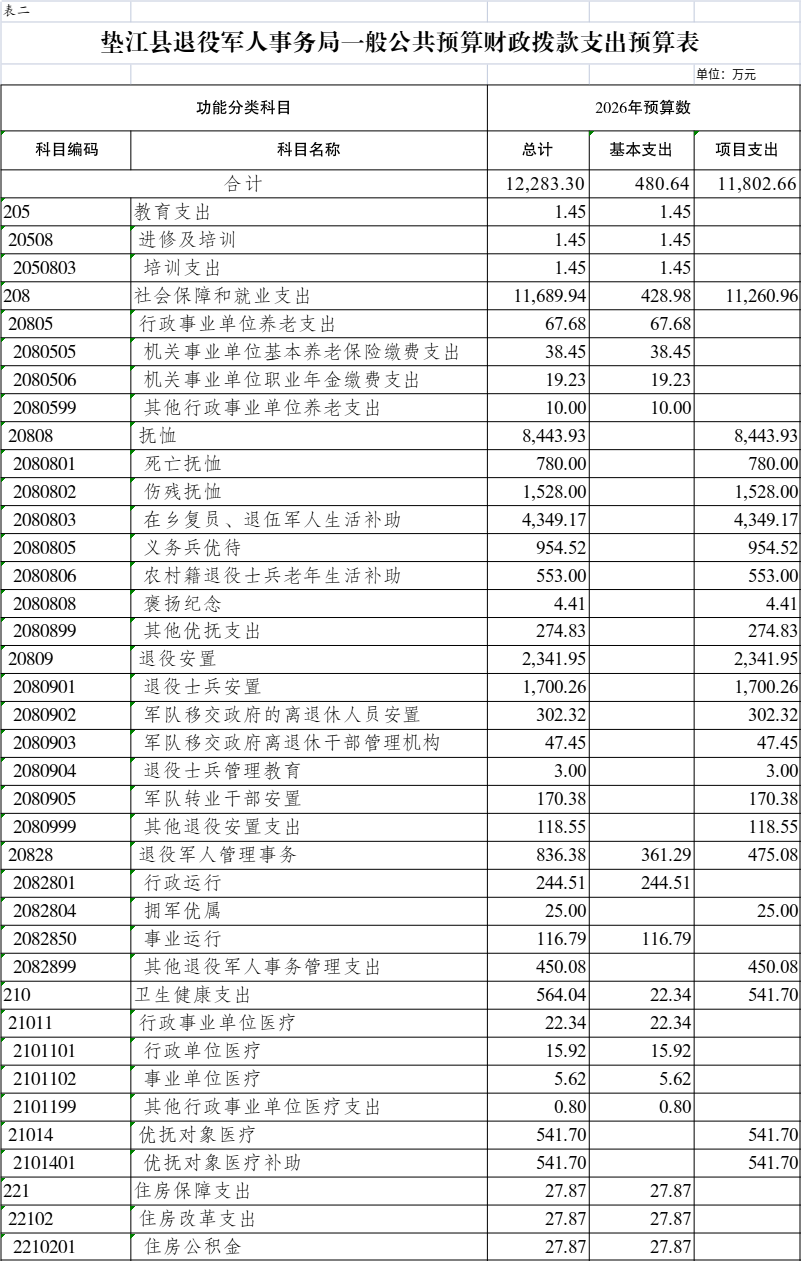 2.垫江县退役军人事务局一般公共预算财政拨款支出预算表