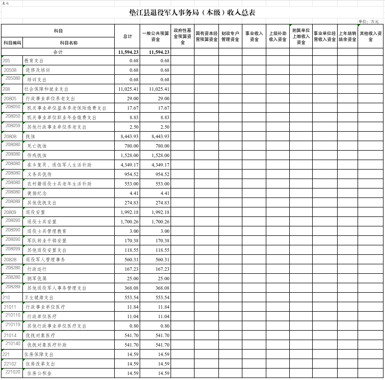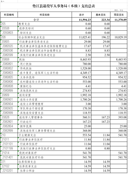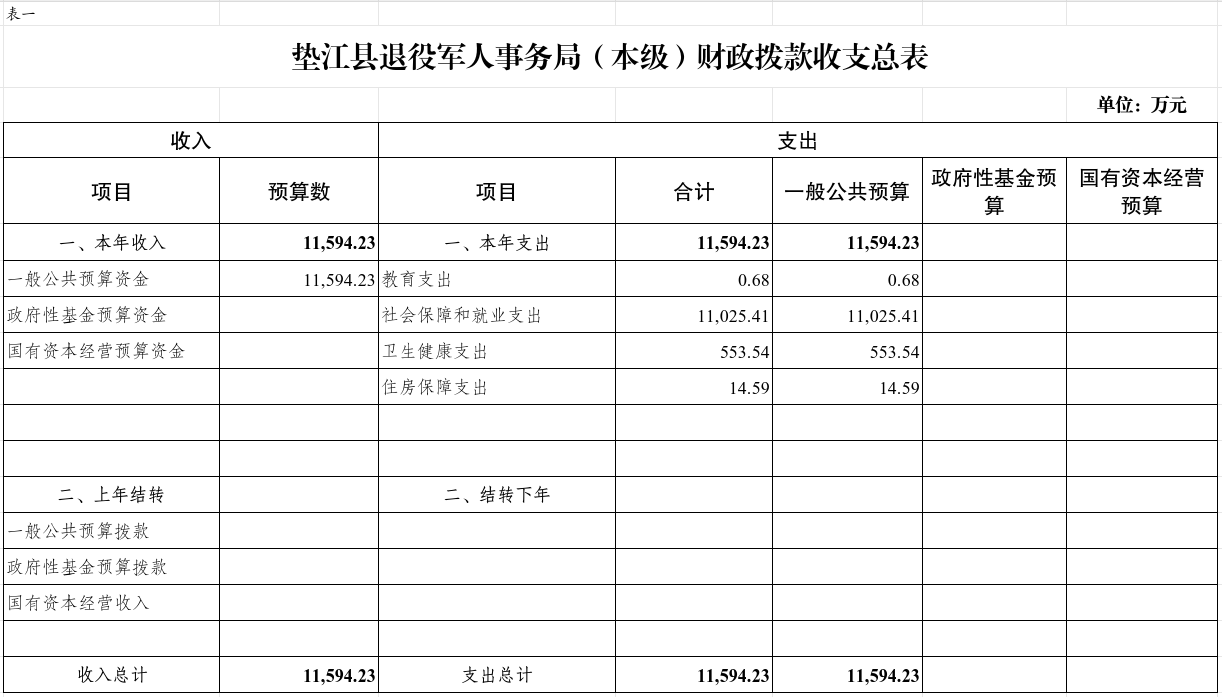 附表:1.垫江县退役军人事务局(本级)财政拨款收支总表