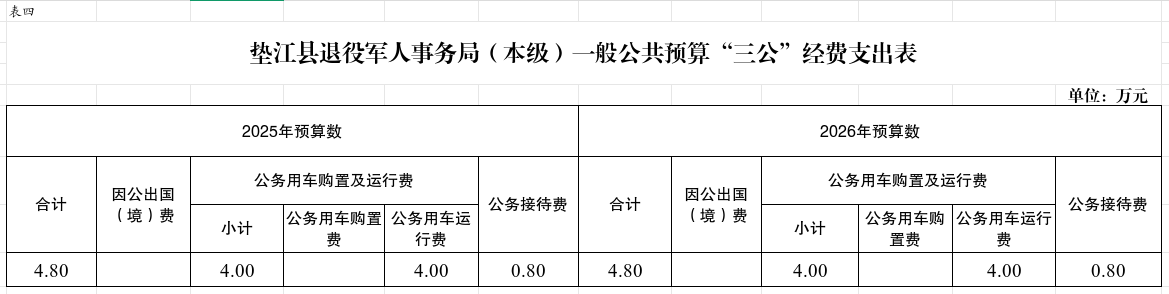 4.垫江县退役军人事务局(本级)一般公共预算“三公”经费支出表
