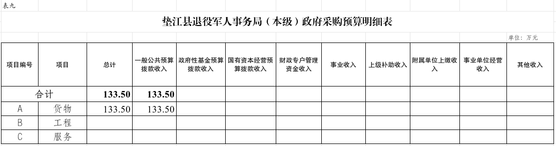 9.垫江县退役军人事务局(本级)政府采购预算明细表