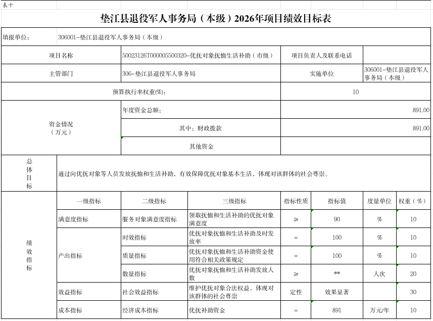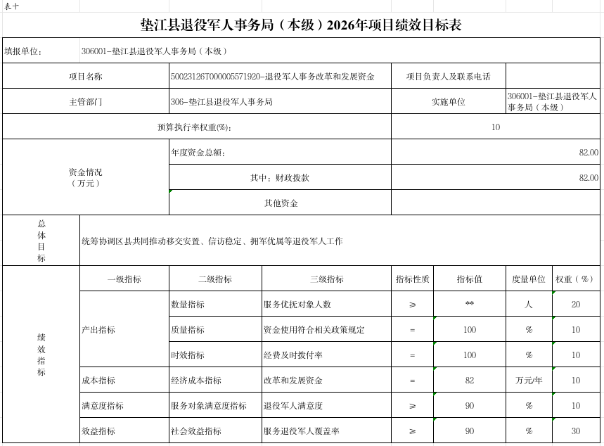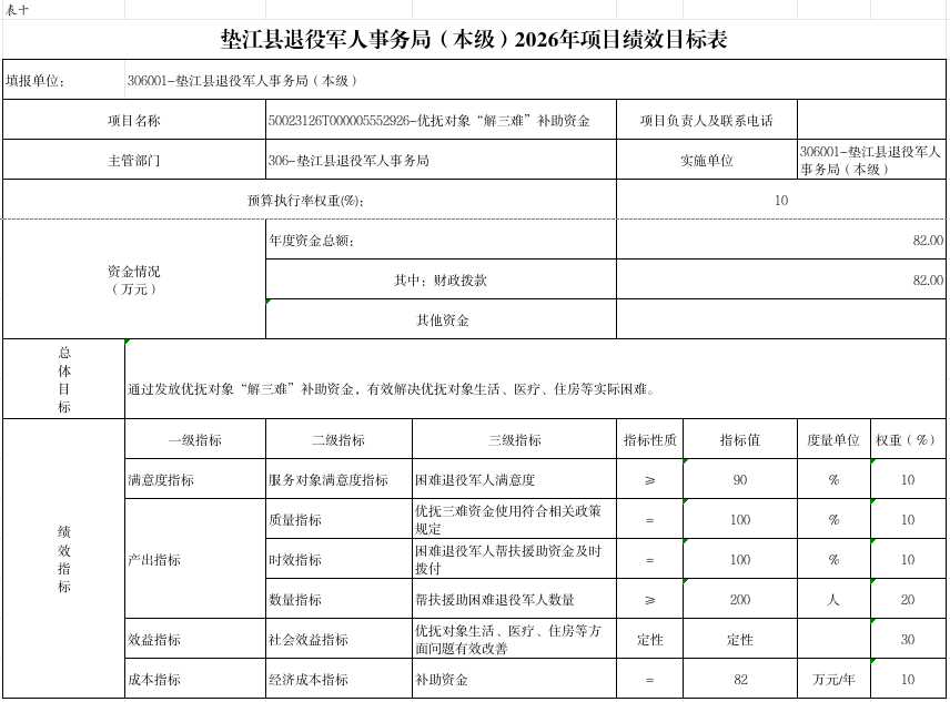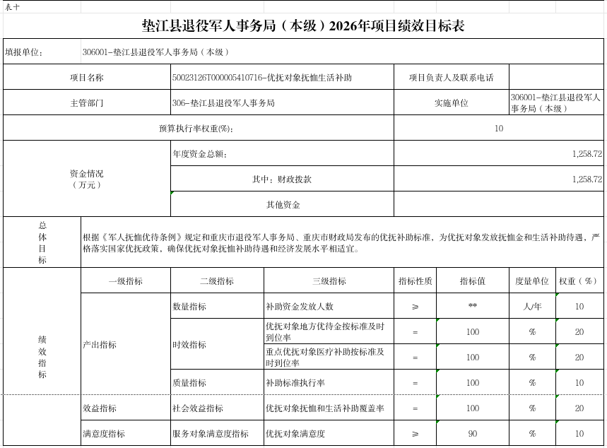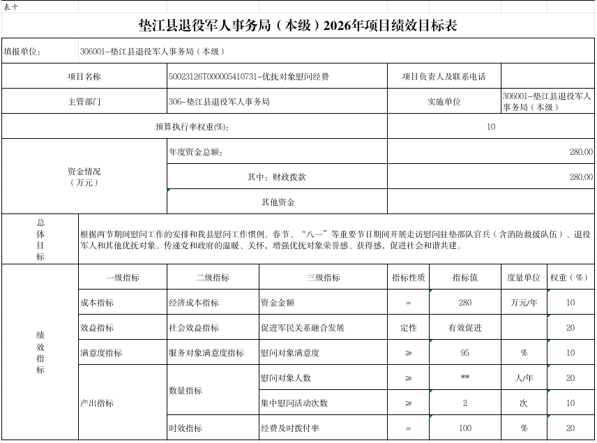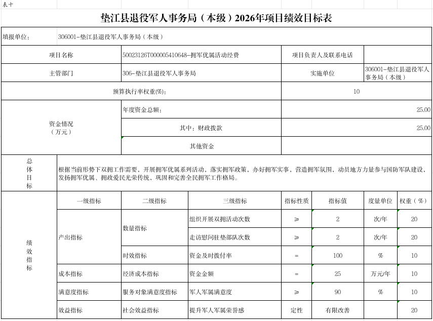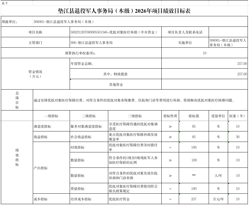 10.垫江县退役军人事务局(本级)2026年项目绩效目标表