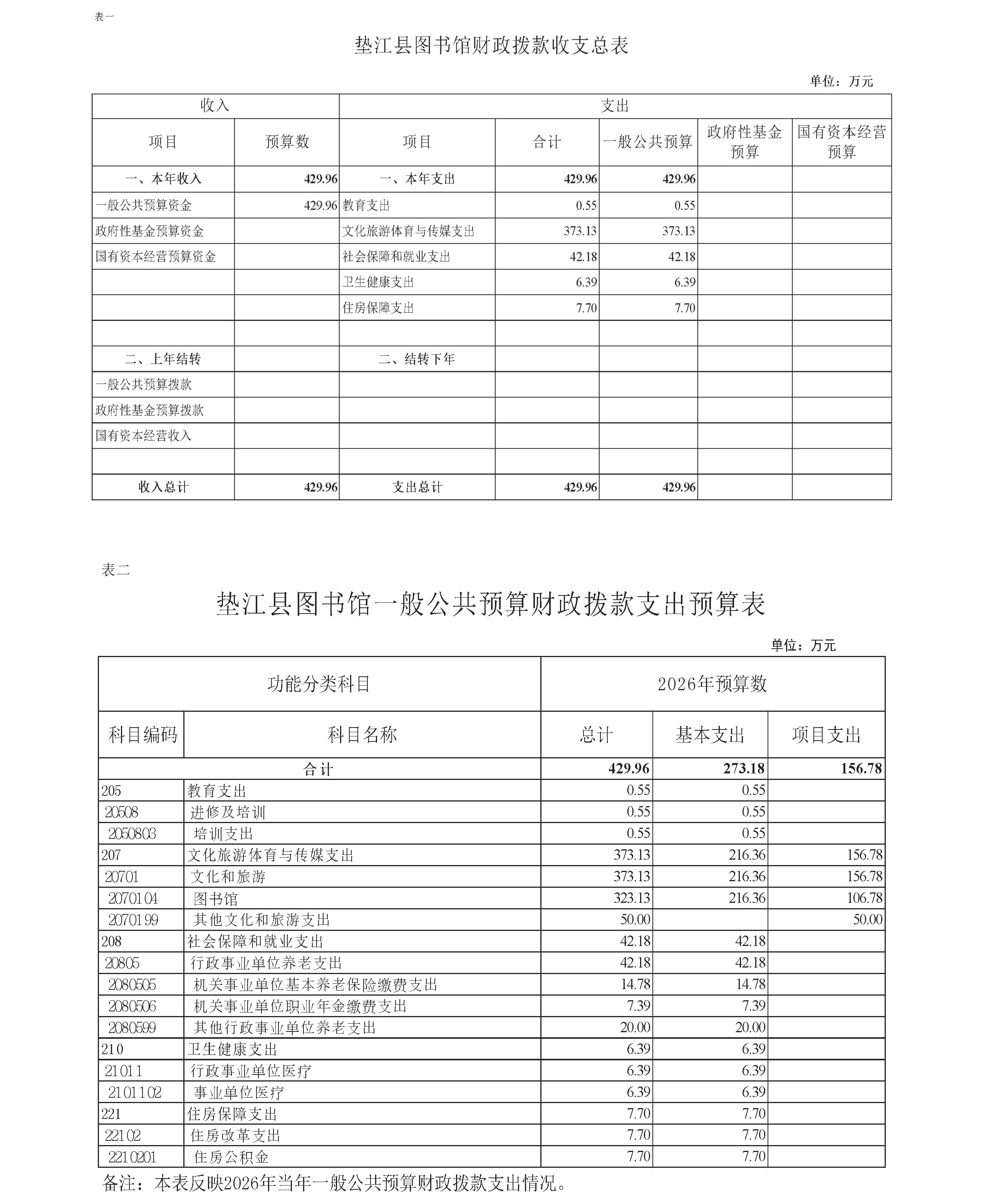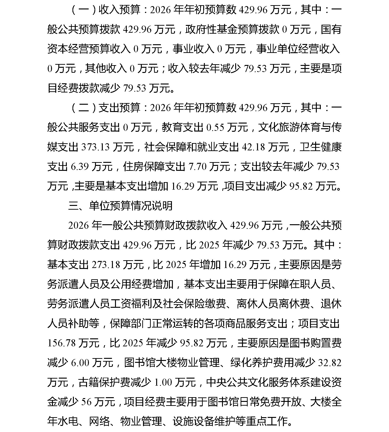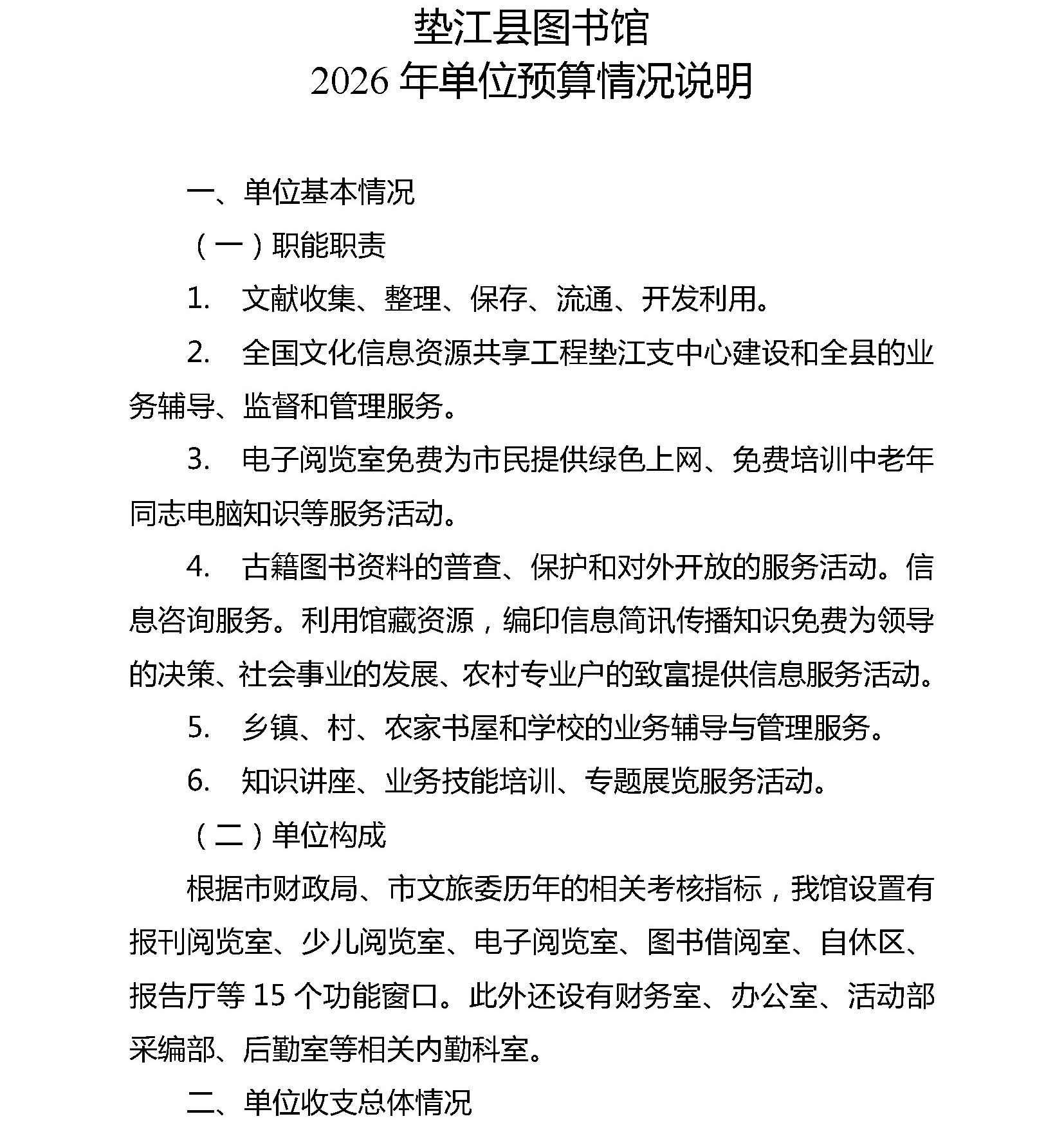 垫江县图书馆2026年单位预算情况说明