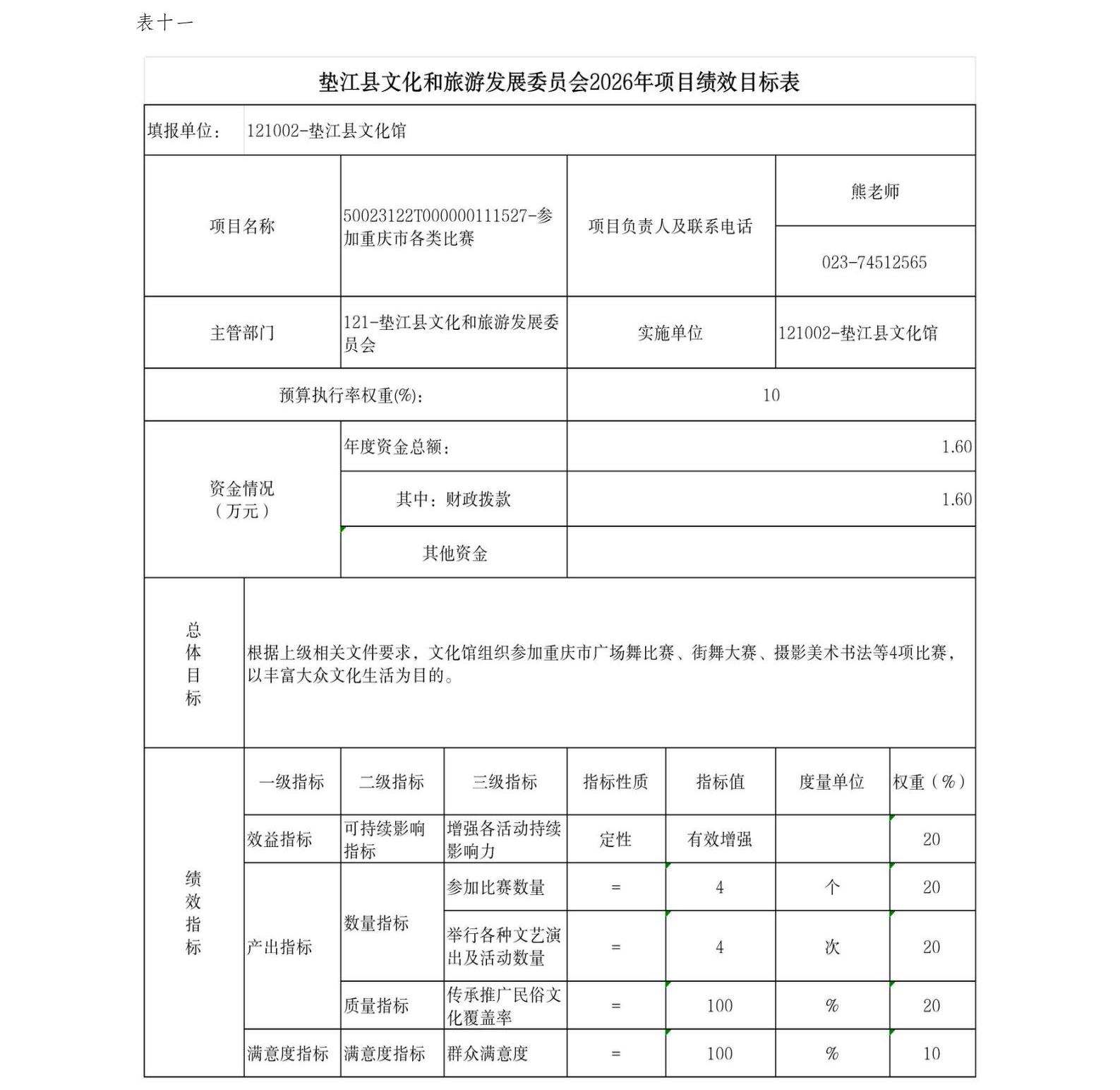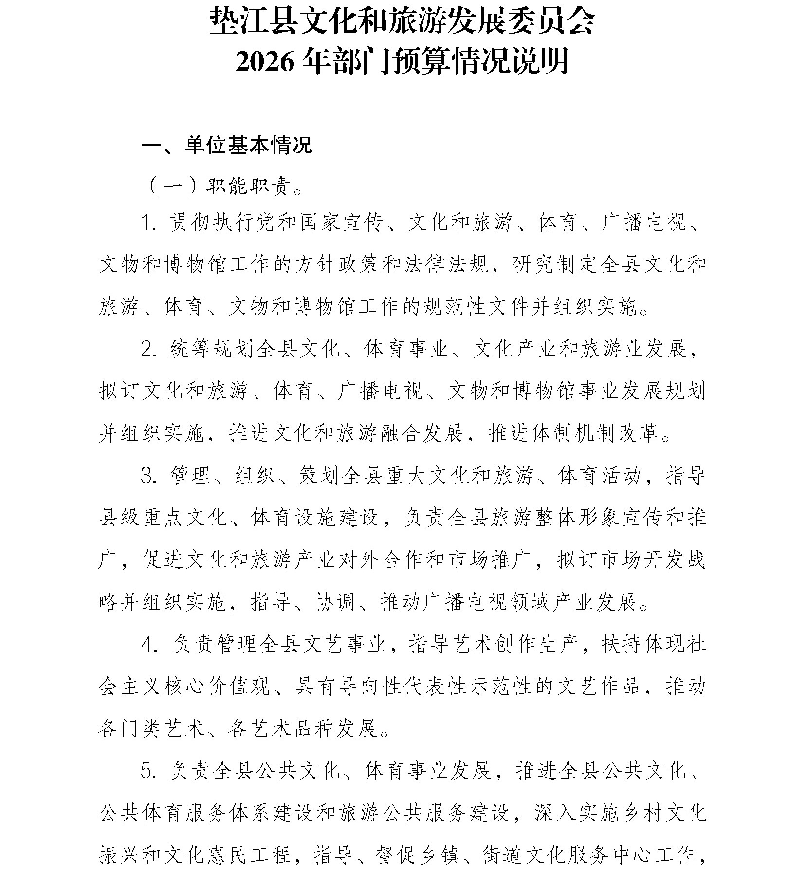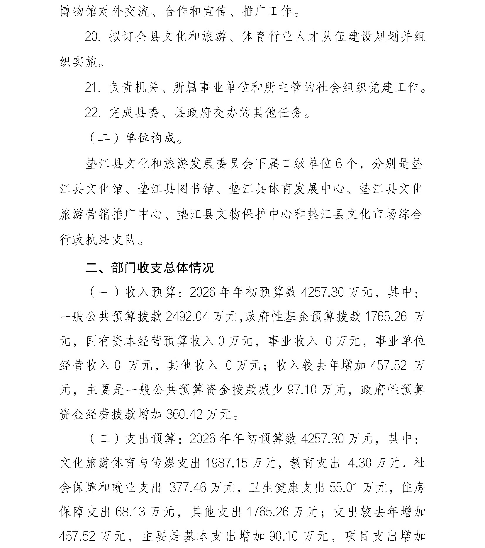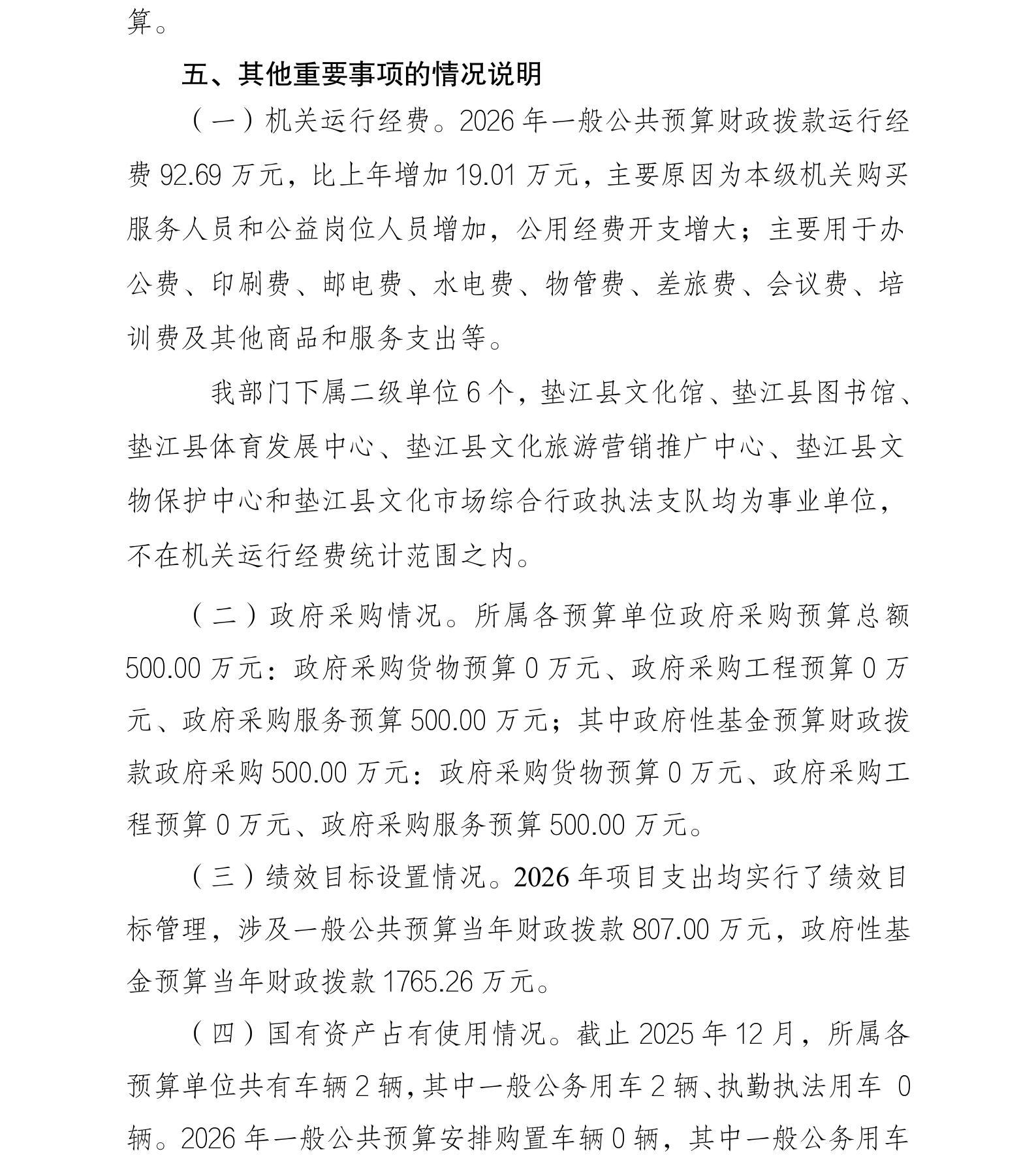 垫江县文化和旅游发展委员会2026年部门预算情况说明