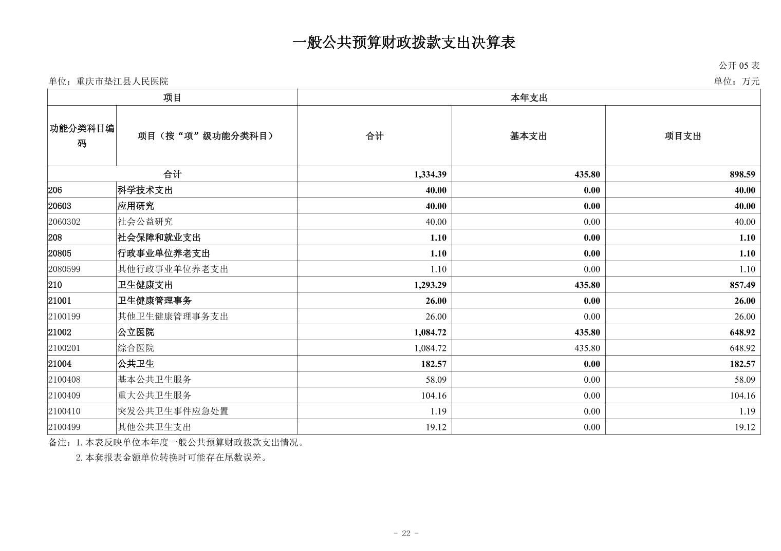 重庆市垫江县人民医院2024年度决算公开说明