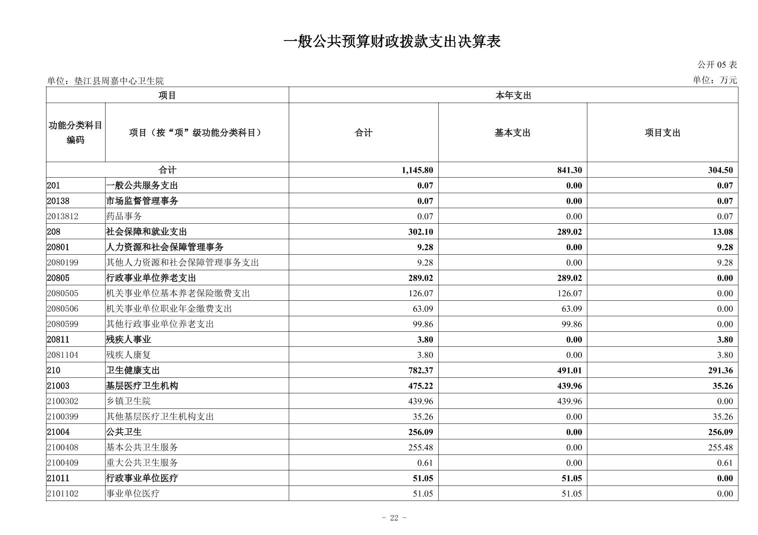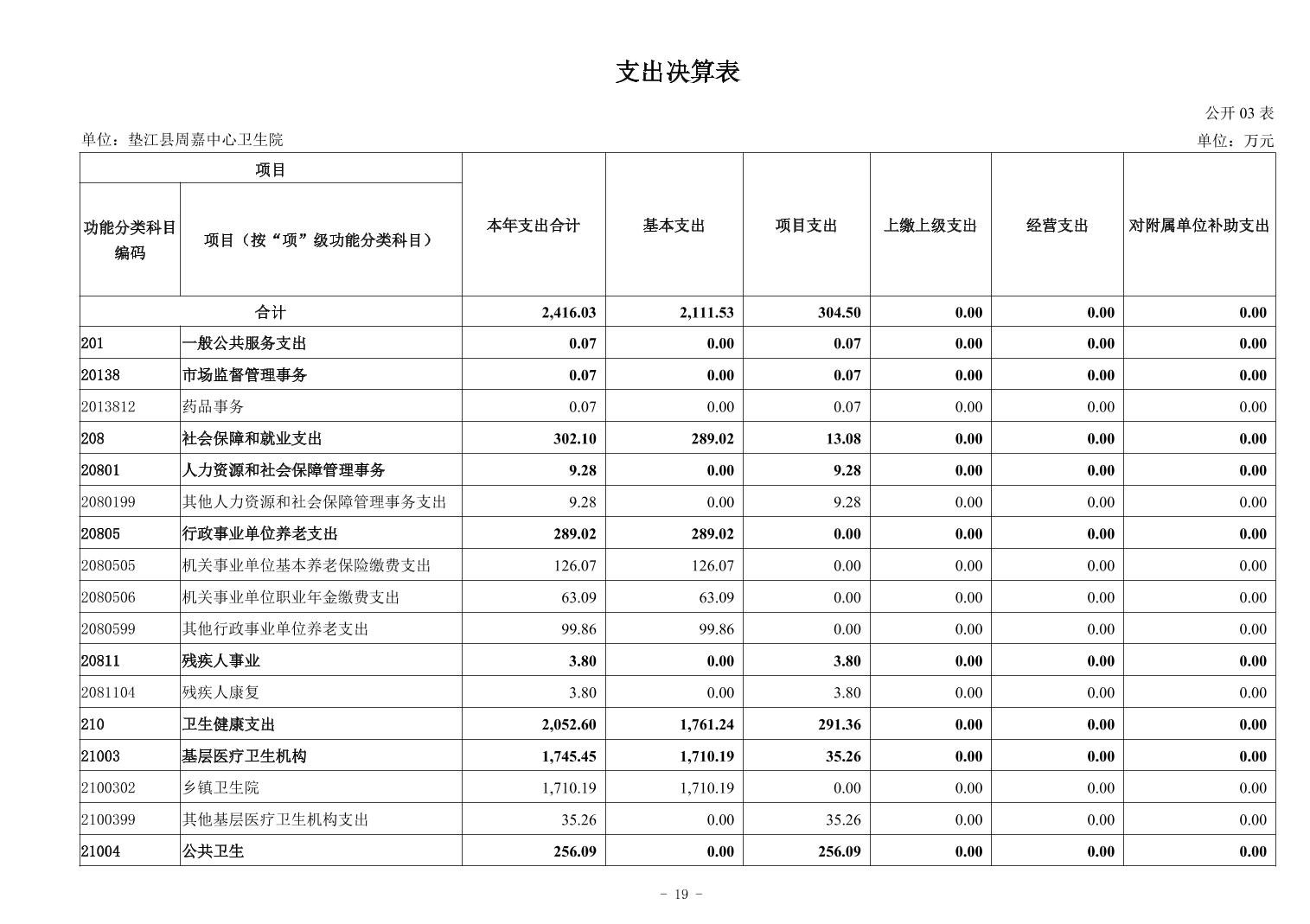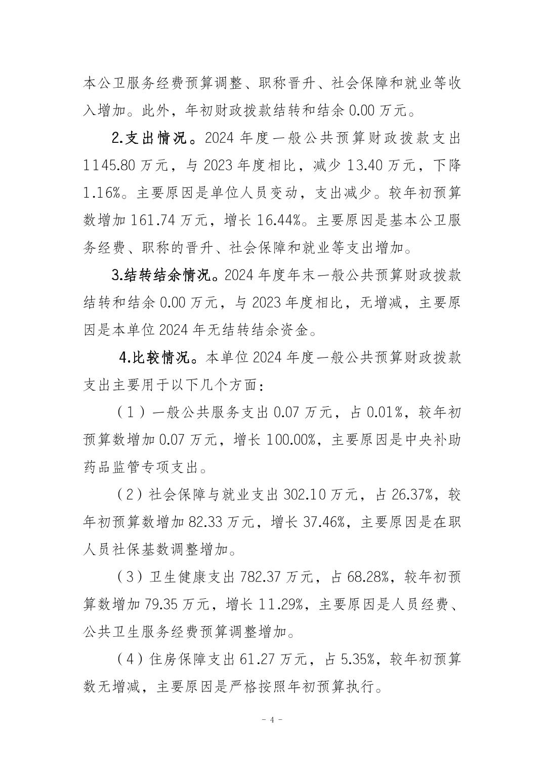 垫江县周嘉中心卫生院2024年度决算公开说明