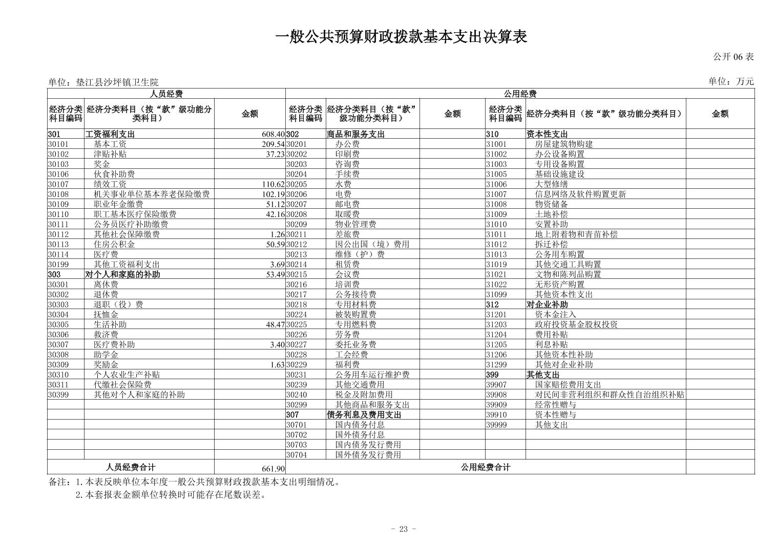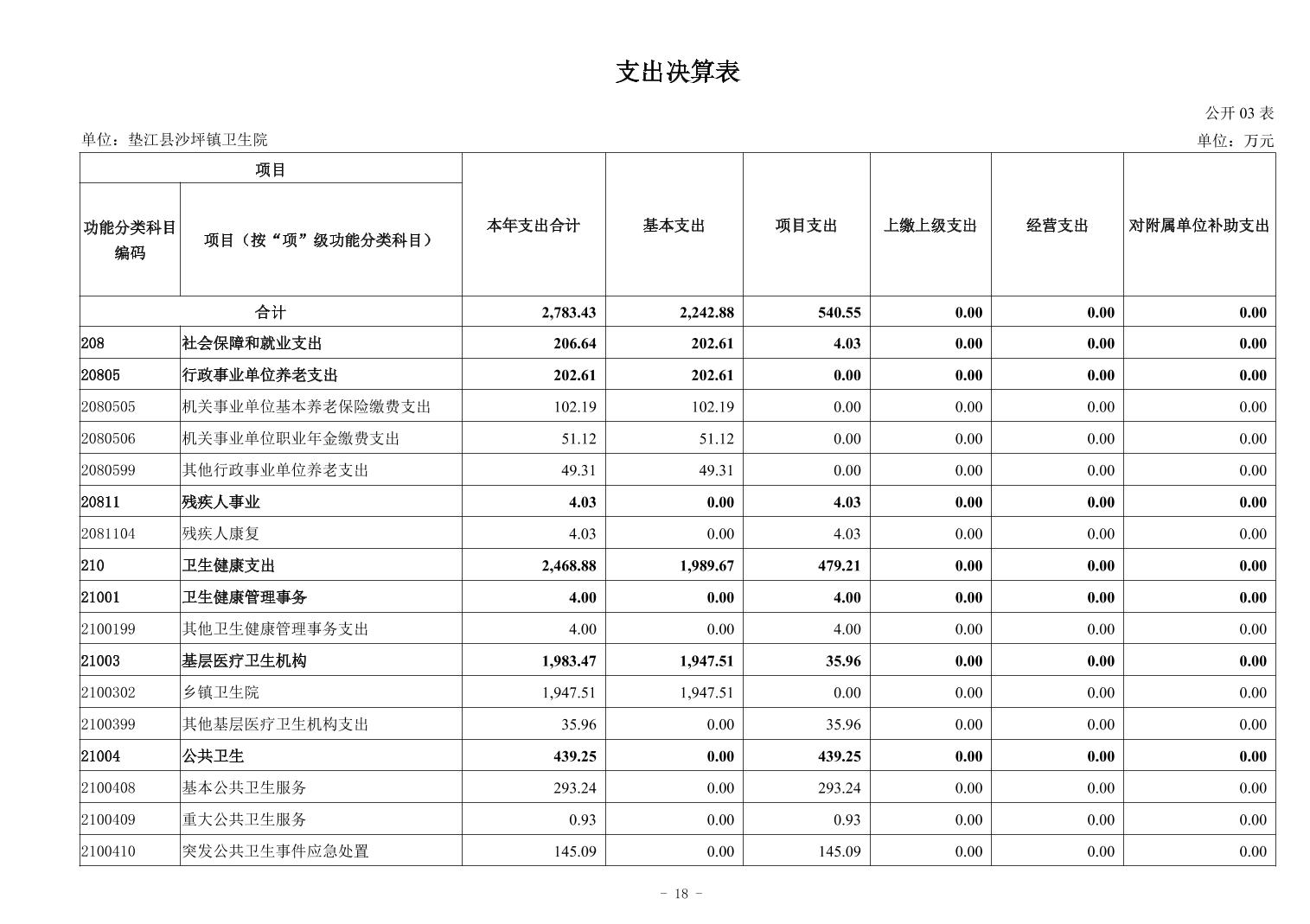 垫江县沙坪镇卫生院2024年度决算公开说明