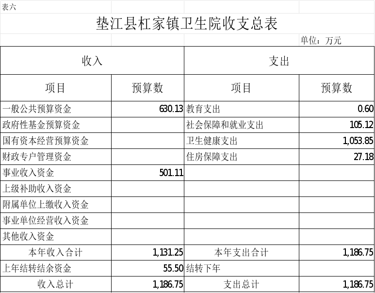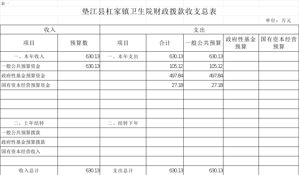 附表:1.垫江县杠家镇卫生院财政拨款收支总表