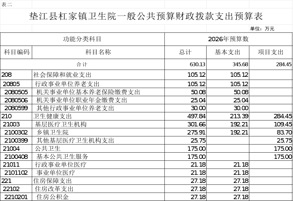 垫江县杠家镇卫生院2026年单位预算情况说明