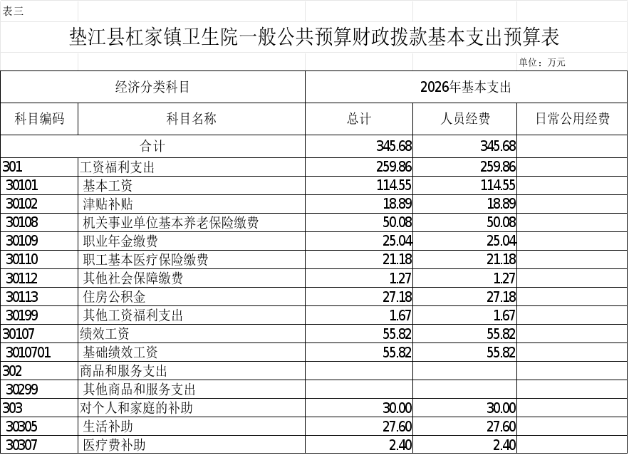 3.垫江县杠家镇卫生院一般公共预算财政拨