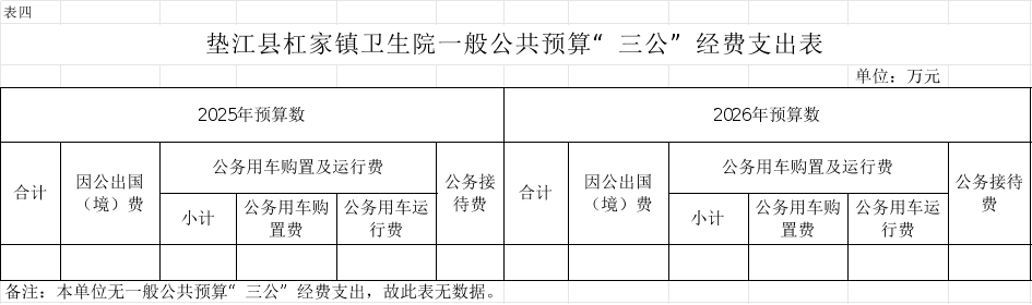 4.垫江县杠家镇卫生院一般公共预算“三公”经费支出表