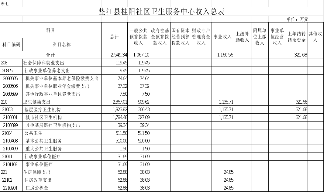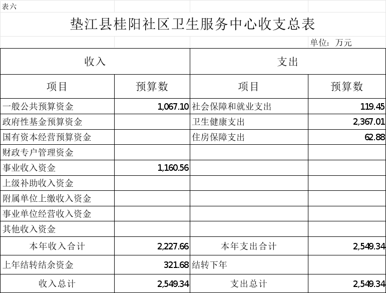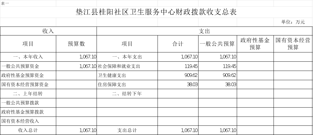 附表:1.垫江县桂阳社区卫生服务中心财政拨款收支总表