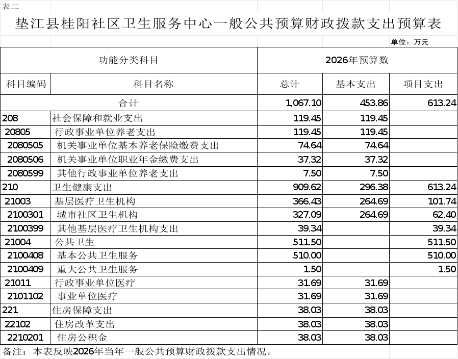 垫江县桂阳社区卫生服务中心2026年单位预算情况说明