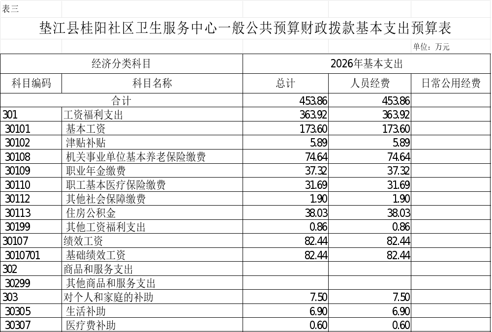 3.垫江县桂阳社区卫生服务中心一般公共预算财政拨款基本支出预算表