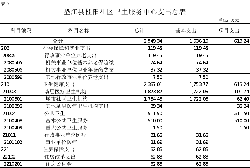 2.垫江县桂阳社区卫生服务中心一般公共预算财政拨款支出预算表