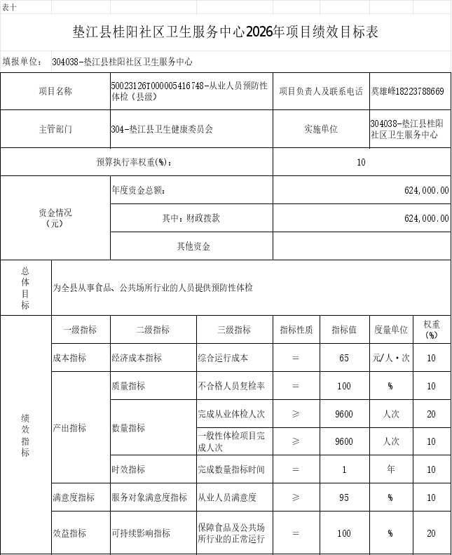 10.垫江县桂阳社区卫生服务中心2026年项目绩效目标表