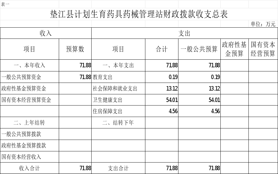 附表:1.垫江县计划生育药具药械管理站财政拨款收支总表