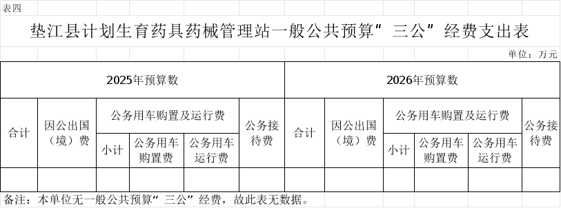4.垫江县计划生育药具药械管理站一般公共预算“三公”经费支出表
